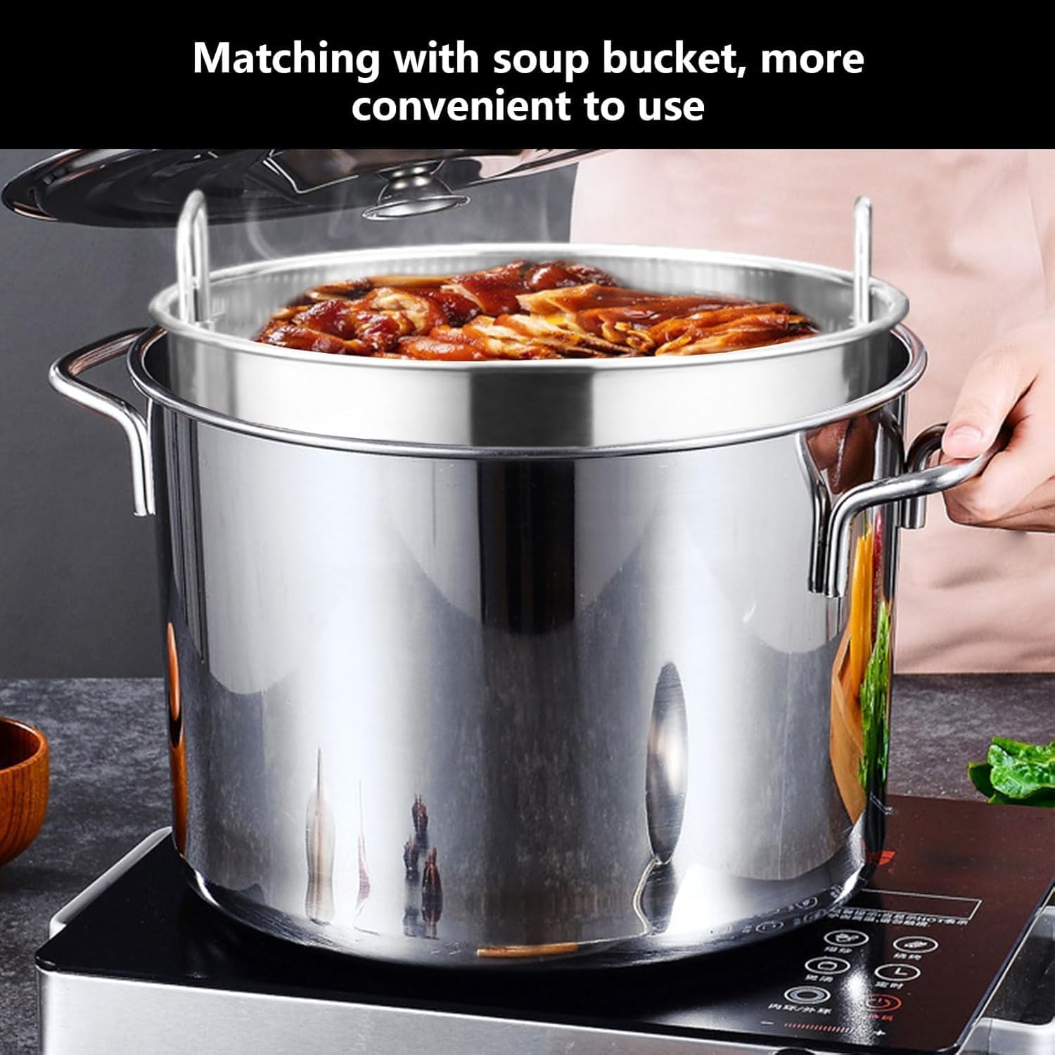 Stainless Steel Stock Pot with Insert Steamer Basket - Perfect for Crawfish, Seafood Boil, Soup, and Turkey Frying(50cmx50cm)