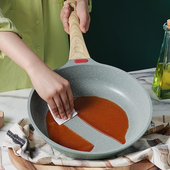 Maifan Stone Flat Bottom Frying Pan Non-Stick Frying Pan Without Lid Gas Induction Cooker(D,24CM)