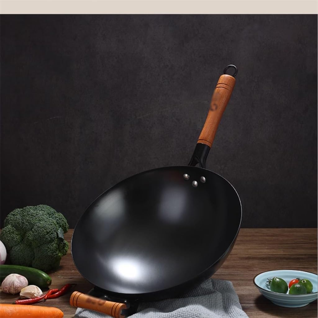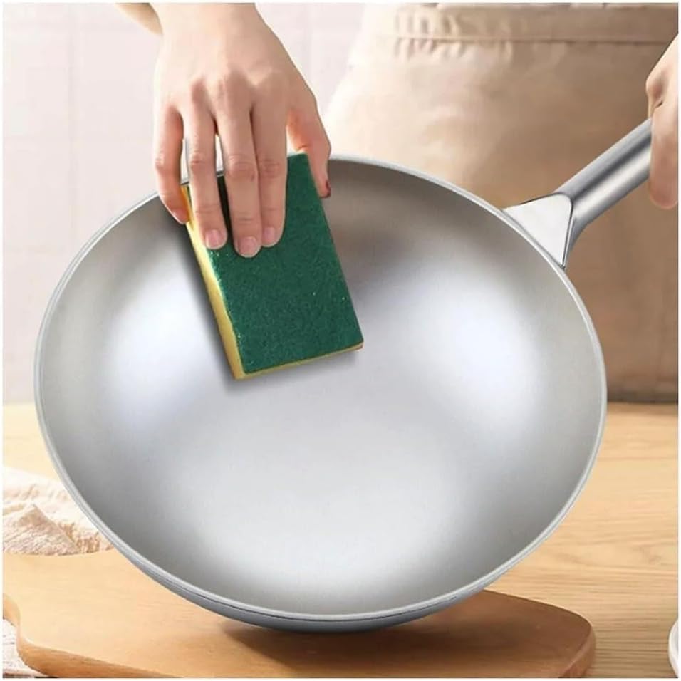 Pure Titanium Wok, Uncoated Non-Stick Frying Pan, Lightweight Round Bottom Pot for Household Use