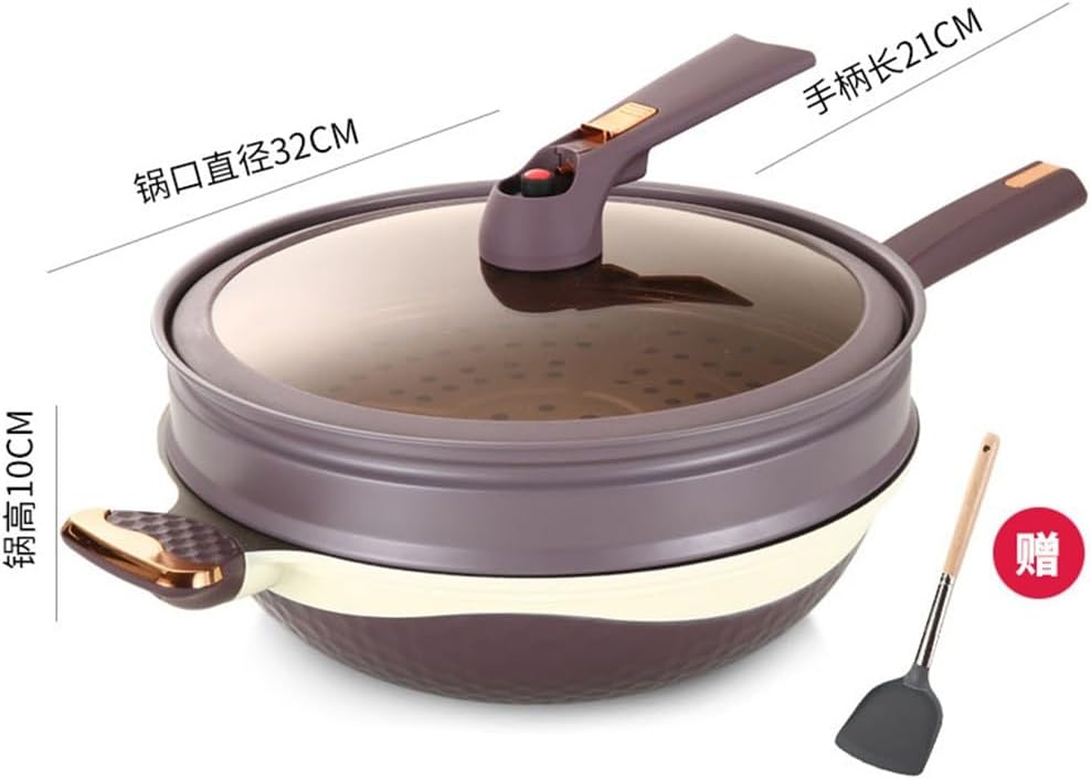 Home Micro Pressure Wok Non-stick Frying Pan Does Not Pick The Stove Fry with Steamer 32CM