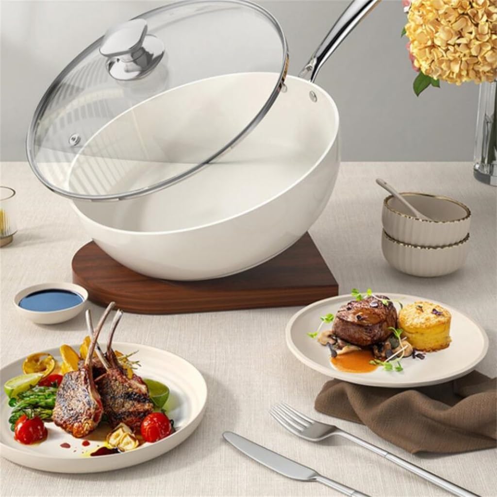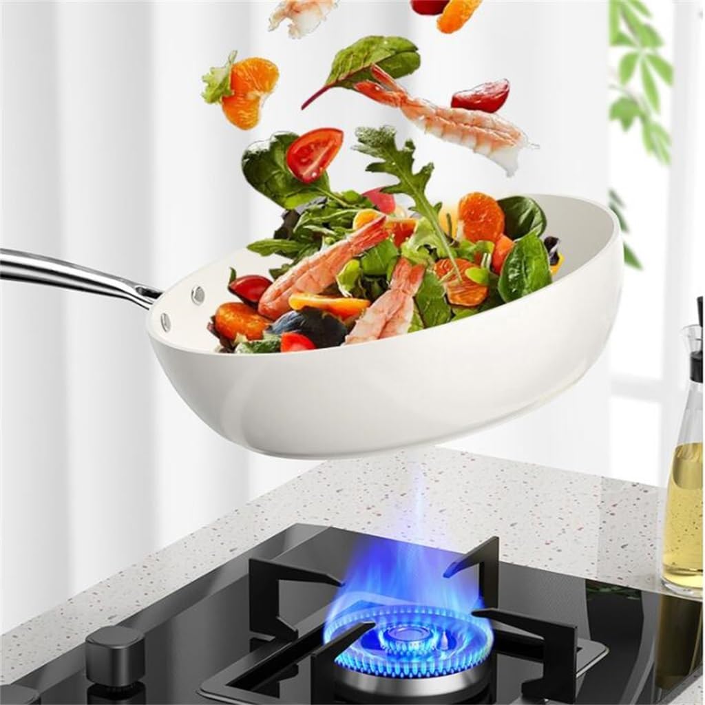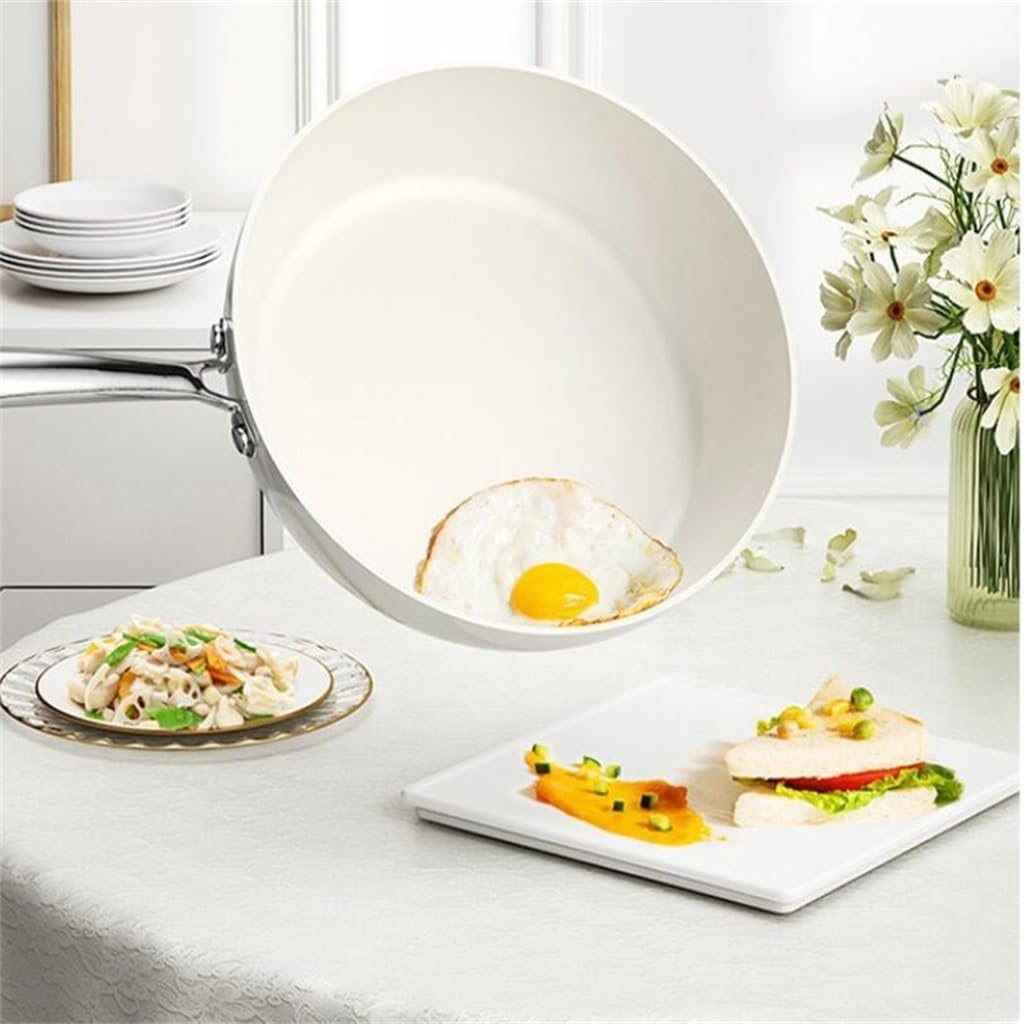 Beici White Glazed Frying Pan, Household Ceramic Non Stick, Flat Bottomed Deep Stove, Universal