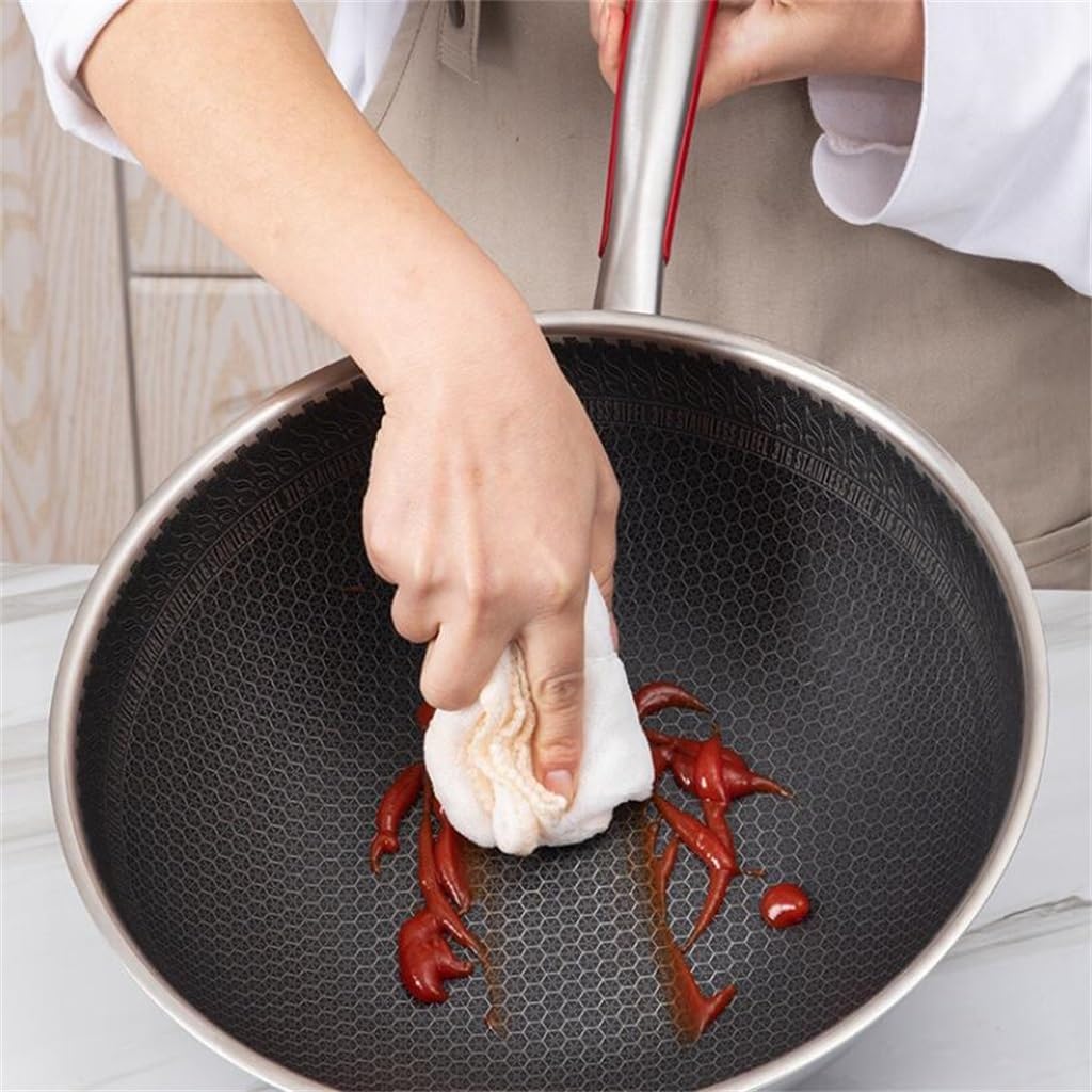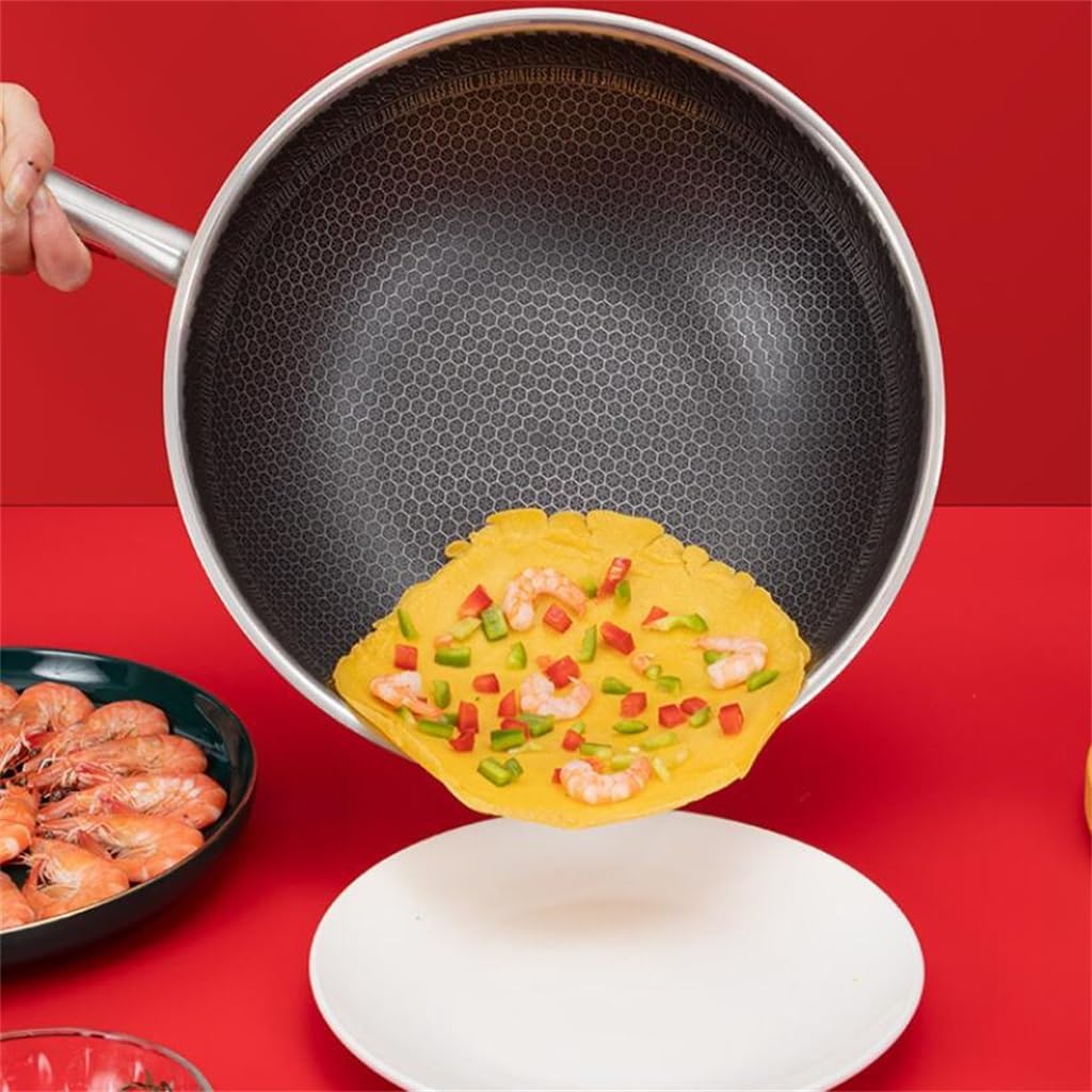 Stainless Steel Frying Pan, Household Flat Bottomed Non Stick, Double-sided Screen, Uncoated Honeycomb