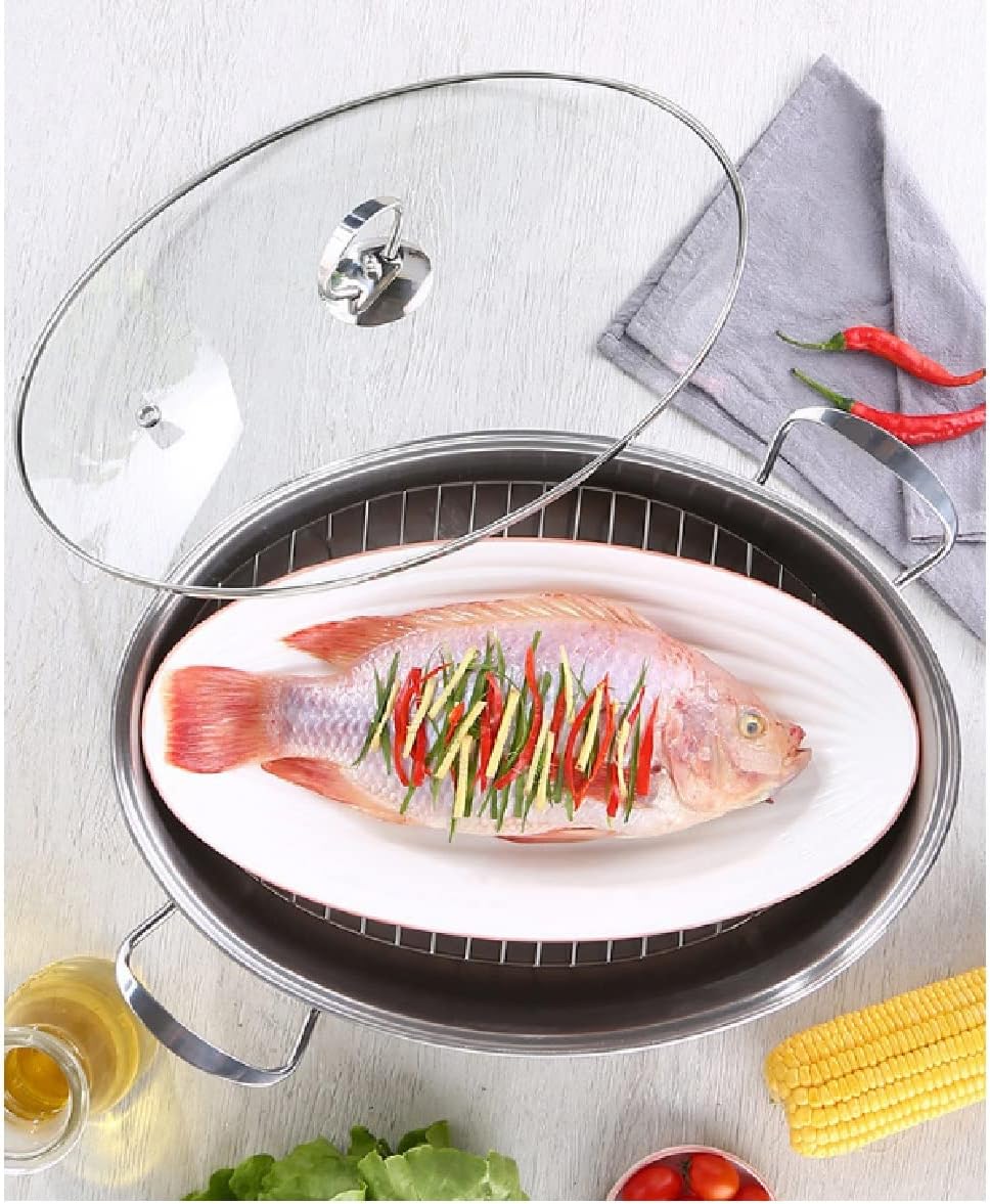 Stainless Steel Kitchen Fish Steamer Multi-Function Oval Steamer with Steaming Rack Large-Capacity Seafood Cooking Pot,D