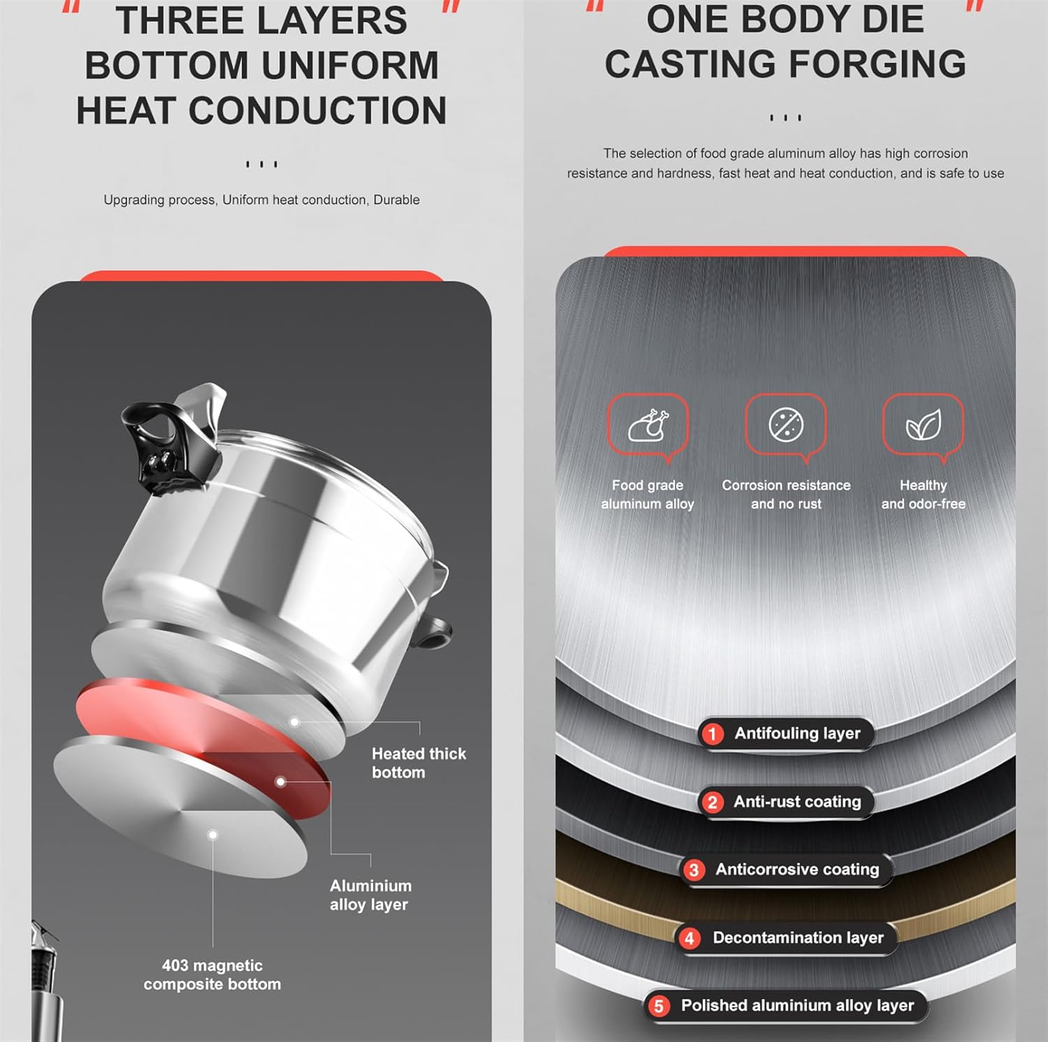 Aluminium Alloy Pressure Cooker Explosion-Proof Press Pot Stewpan Soup Pan Induction Compatible Pressure Cookware for Household Restaurant