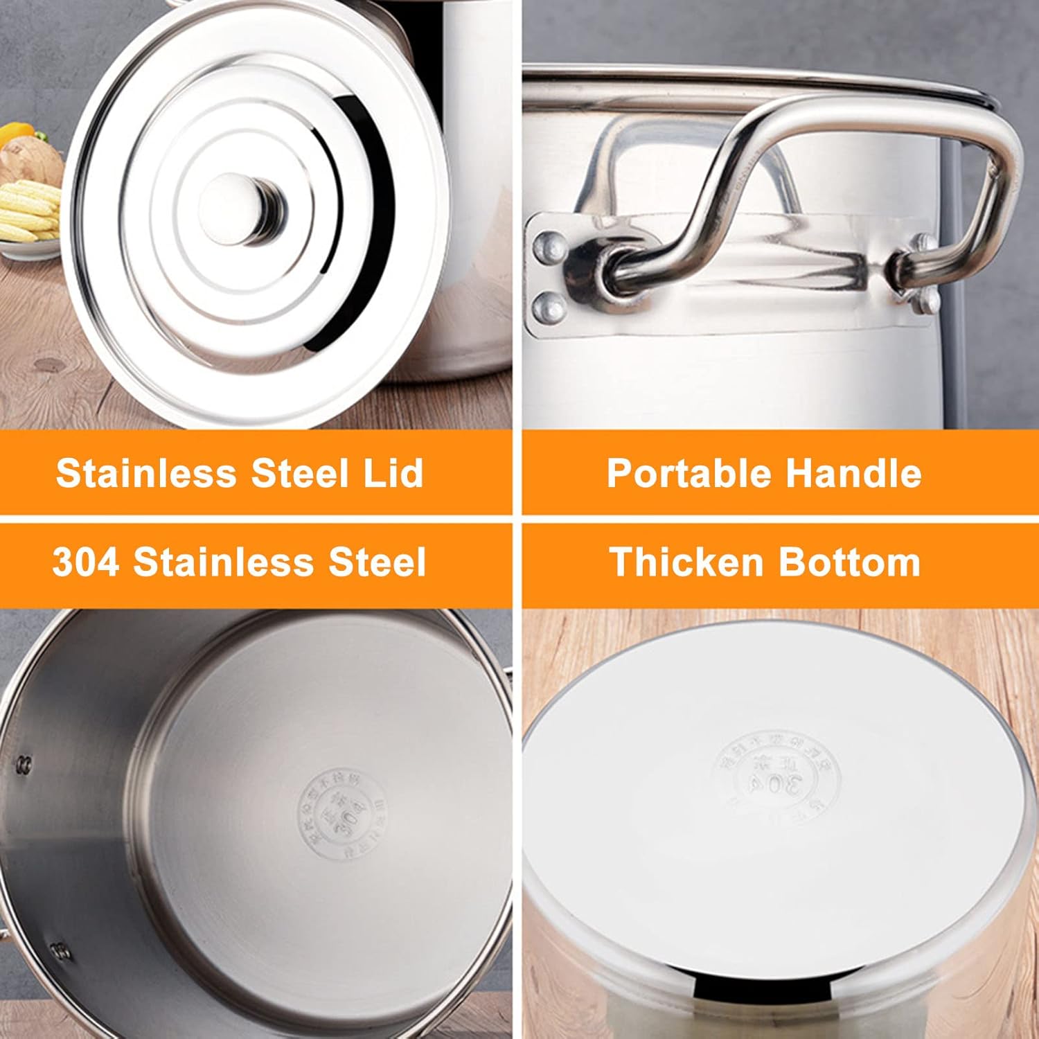 Large Food Grade 304 Stainless Steel Soup Kitchen,3-Layer Composite Bottom,Large Commercial Soup Kitchen,20-50cm (Silver-36cmx36cm