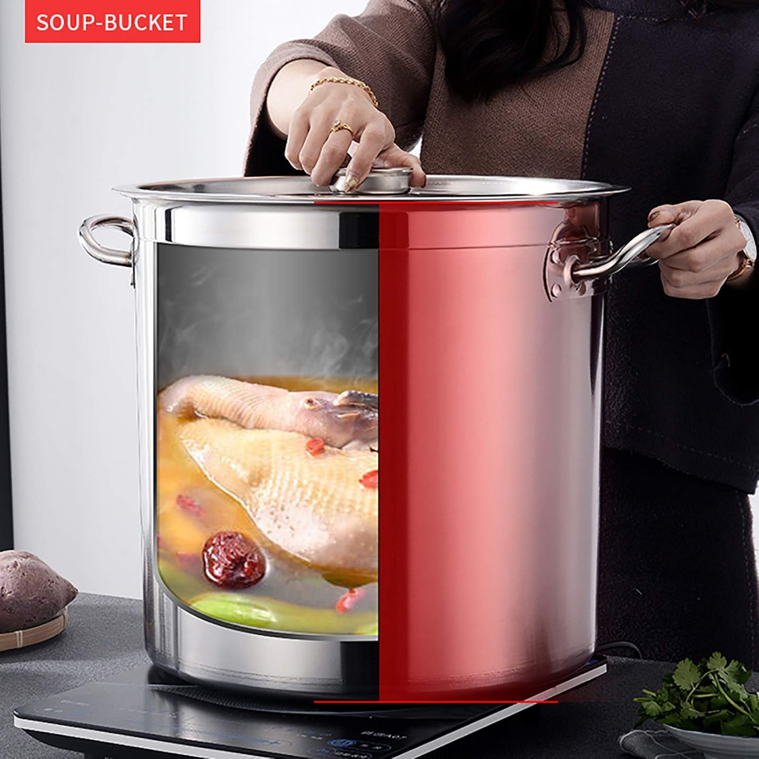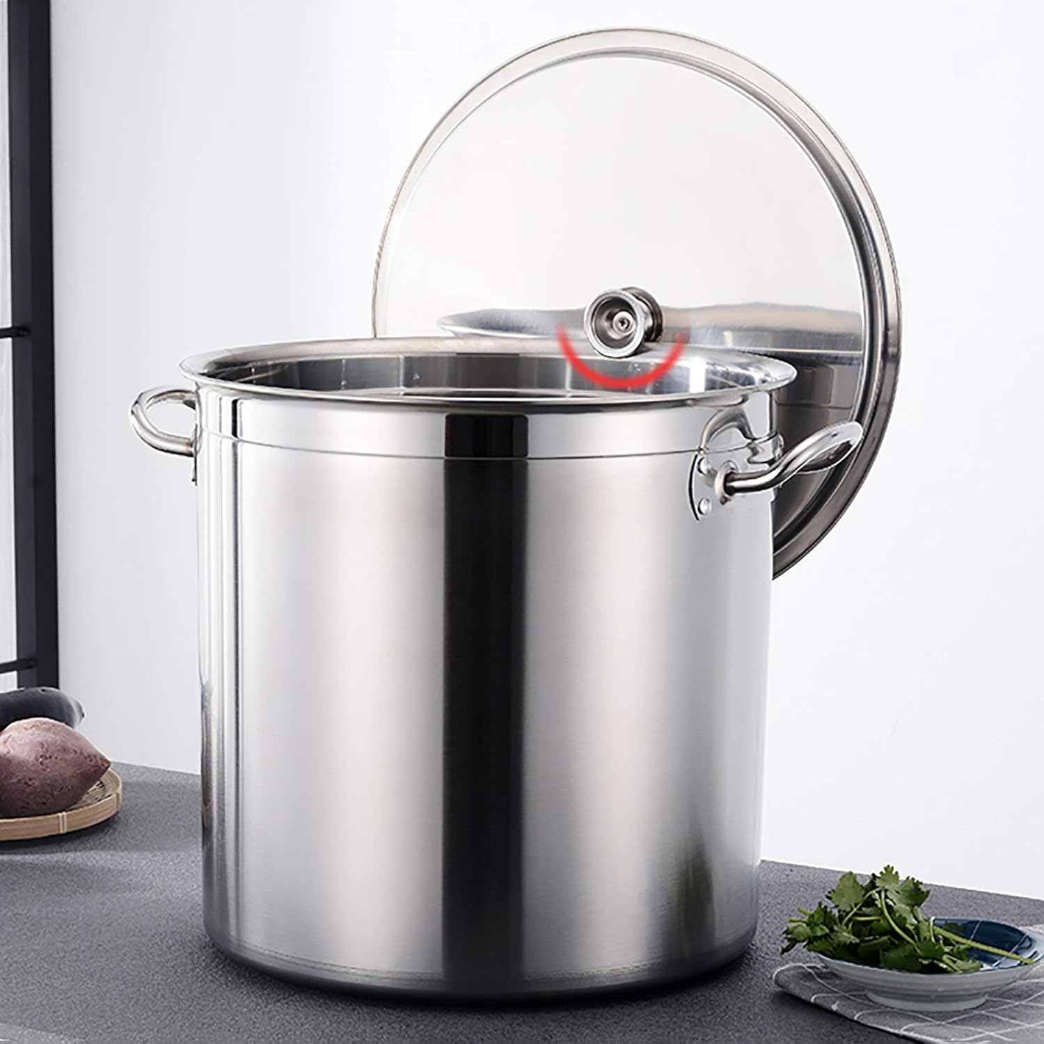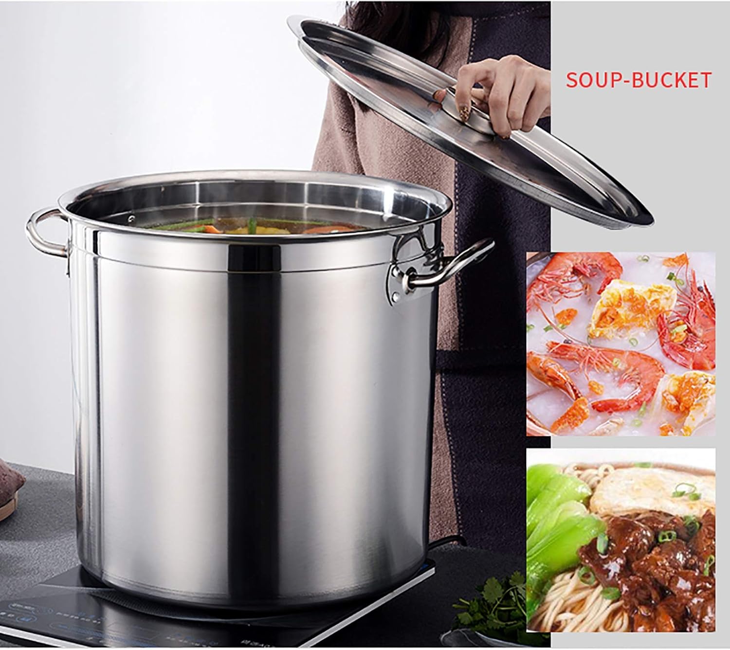 Large Stock Kitchen, Professional Safe Stainless Steel Stock Kitchen with Lid, 3-Layer Composite Bottom, Hangable Lid, 5 Size (Silver-45cm*45.5cm