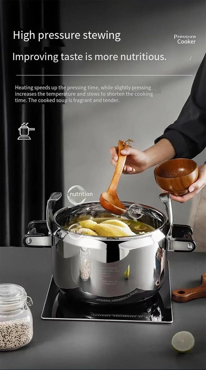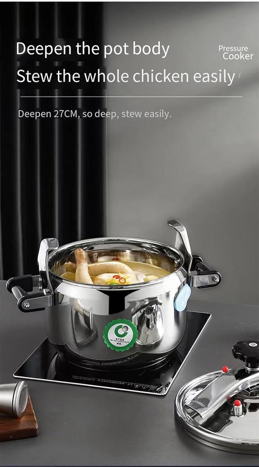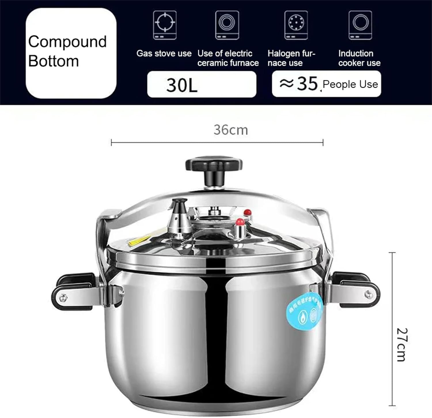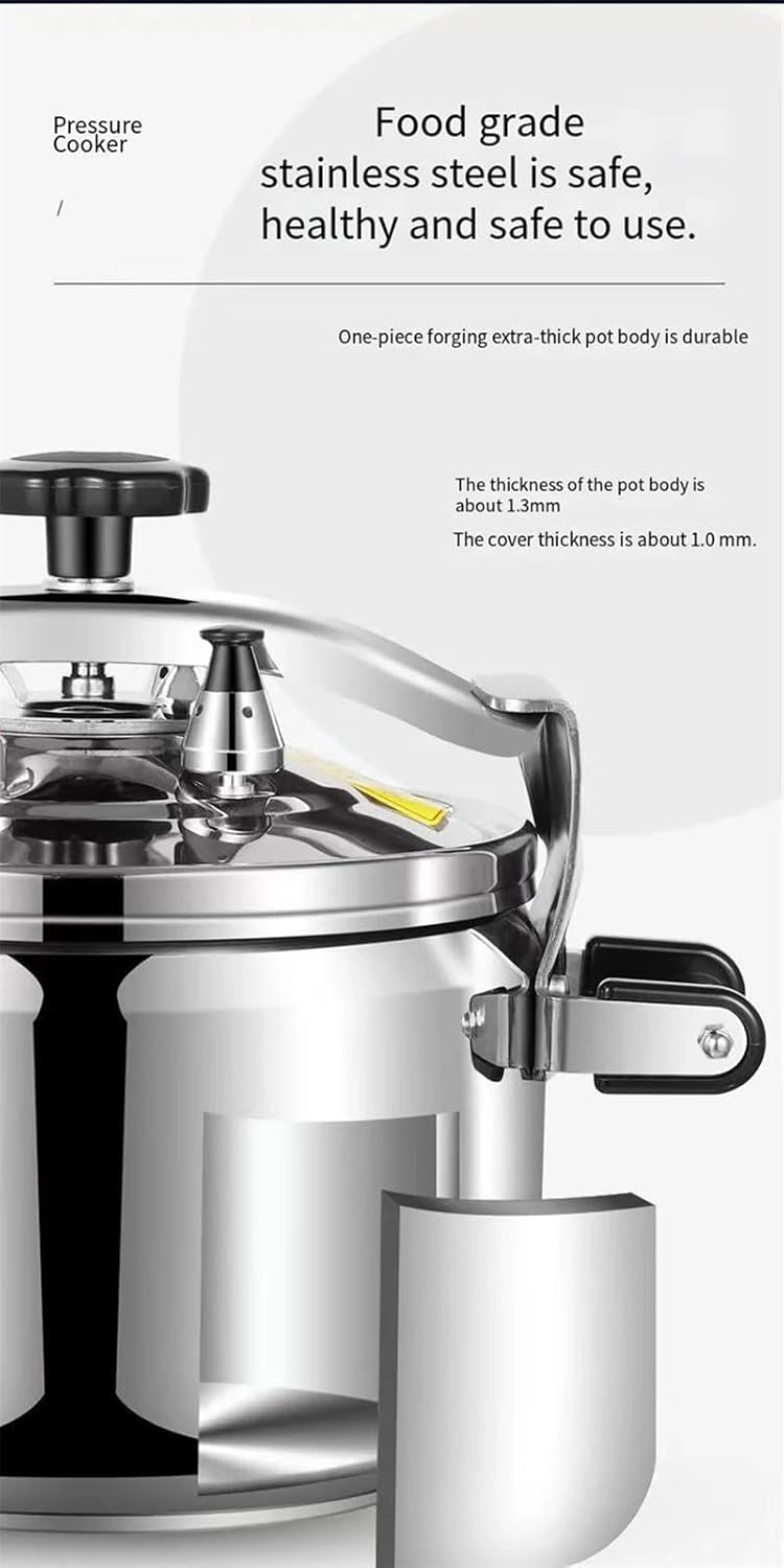 Stainless Steel Pressure Cooker, Induction Compatible Thickened Pressure Cooker with Spring Valve Safeguard Devices, Multi Pressure Levels,Compatible with Gas & Induction,31.7 Quarts