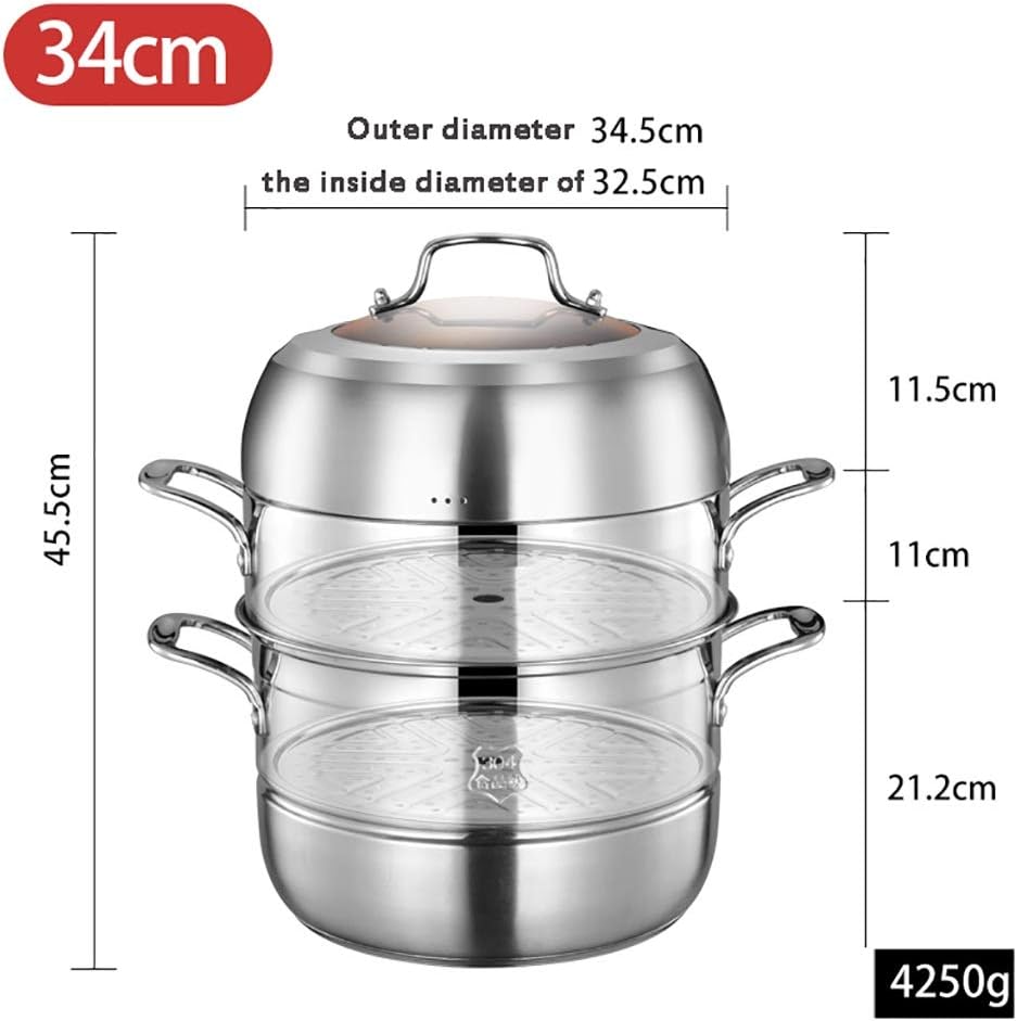 Steamer Soup Pot 3-Layer Household with Steamer Thickened Suitable for Stove Induction Cooker Suitable for 4-8 People/32Cm (34cm