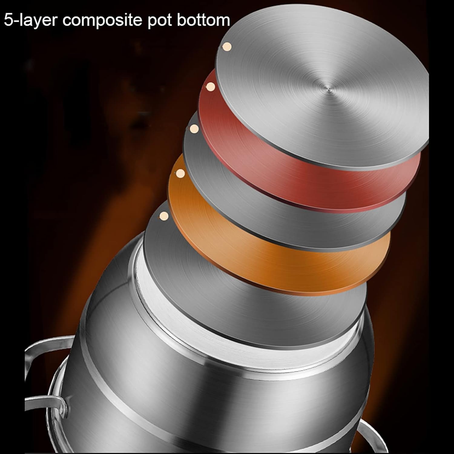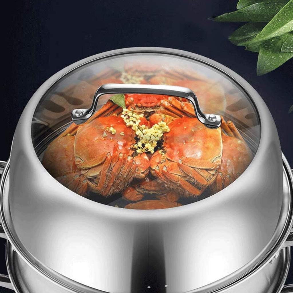 Steamer Pot Soup Pot Steamer,5-Layer Composite Pot Bottom,Steamed Seafood,Steamed Buns,Chicken Soup Cookware Pot Steamer Set/32Cm (32cm