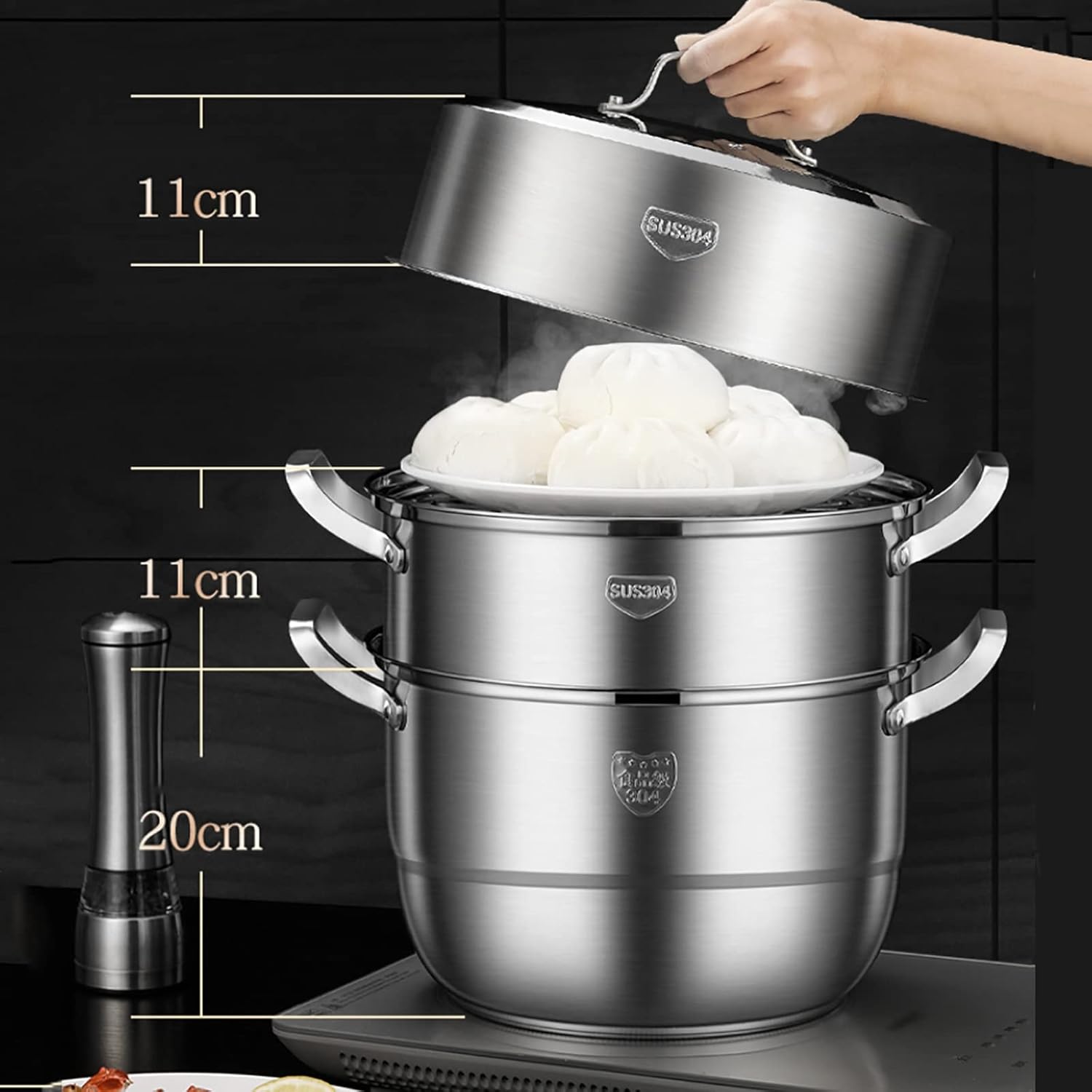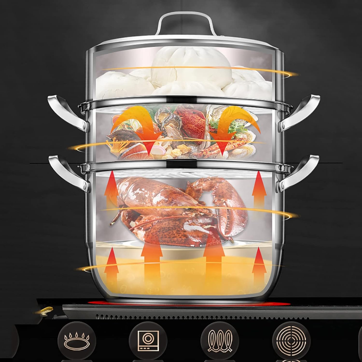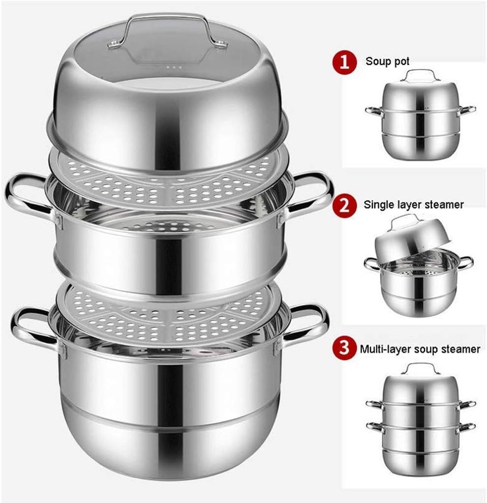 Steamer Set, Large Capacity Induction Cooker with Advanced Structure and Heat-resistant Handle 3-layer Food Steamer Soup Pan(
