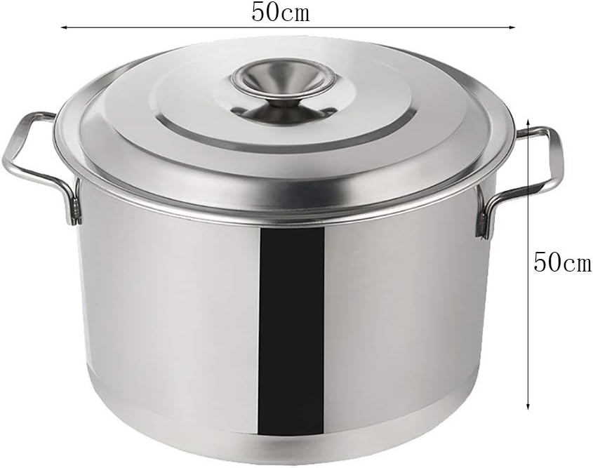 Large Food Grade 304 Stainless Steel Soup Barrel Soup Kitchen,3-Layer Composite Bottom,22-60cm (Silver-50cmx50cm