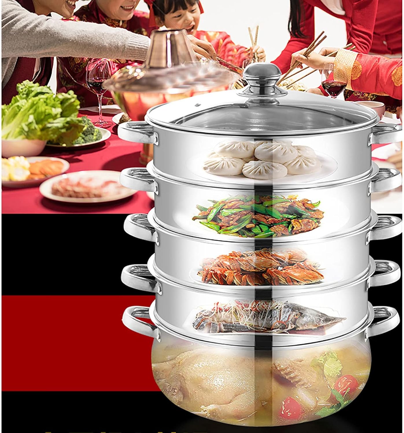 Steamer Pot Soup Pot 316L Stainless Steel Steamer,5-Layer Composite Pot Body,Steamed Buns,Stewed Chicken Soup Cookware Pot Steamer Set/28Cm (28cm