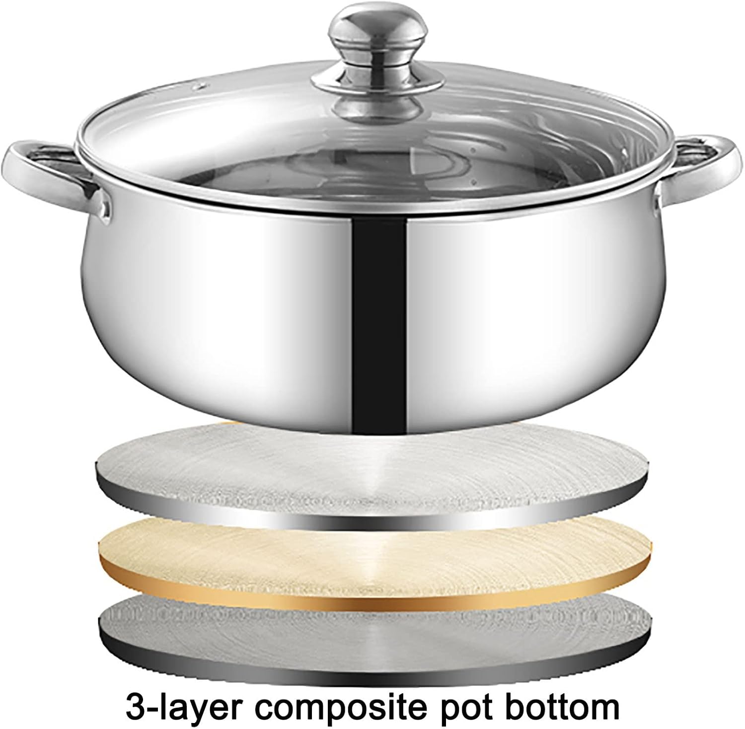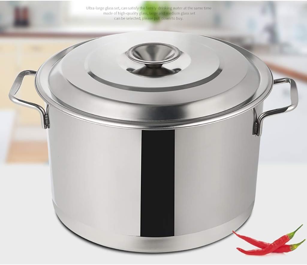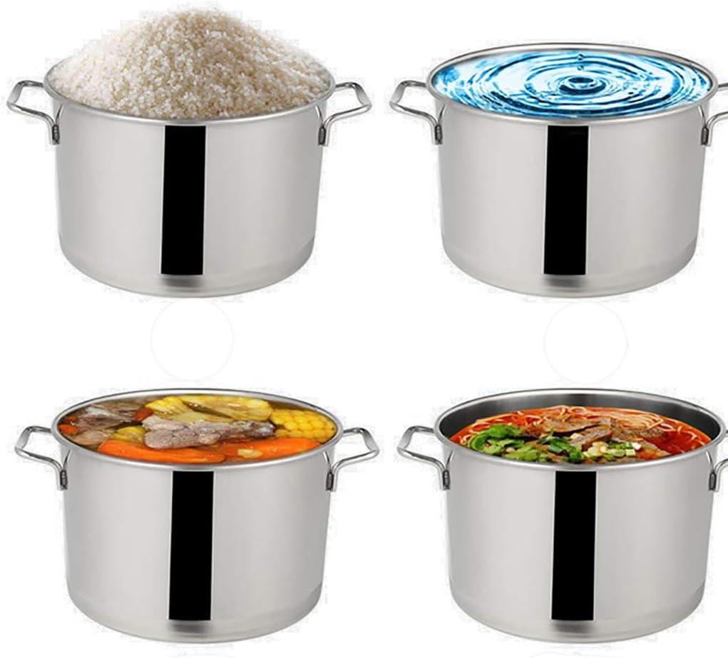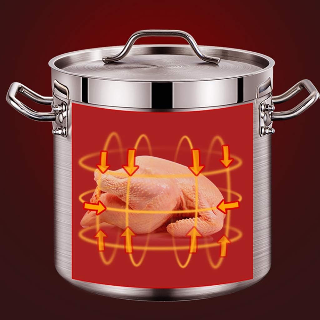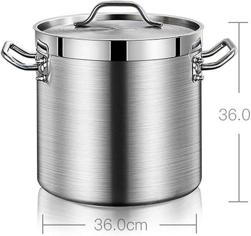 Large Food Grade 304 Stainless Steel Soup Kitchen,Large Commercial Soup Kitchen,3-Layer Composite Bottom,20-50cm (Silver-36cmx36cm