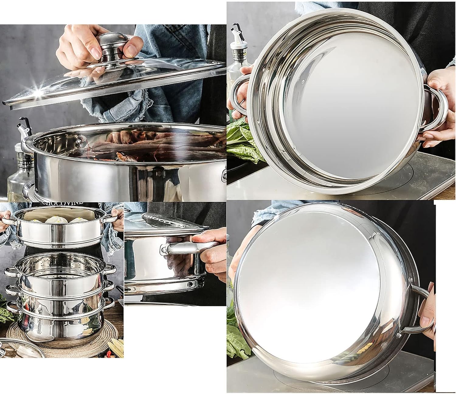 Stainless Steel Three Layer Thick Steamer Pot Soup Steam Pot Universal Cooking Pots for Induction Cooker Stove(