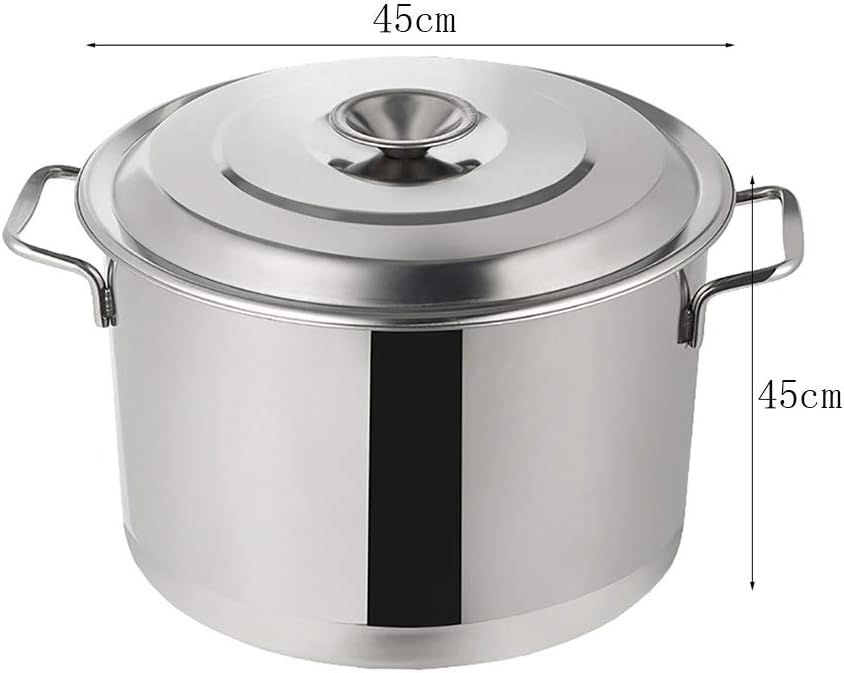 Large Food Grade 304 Stainless Steel Soup Barrel Soup Kitchen,3-Layer Composite Bottom,Diameter 22cm,Height 22cm (Silver-45cmx45cm