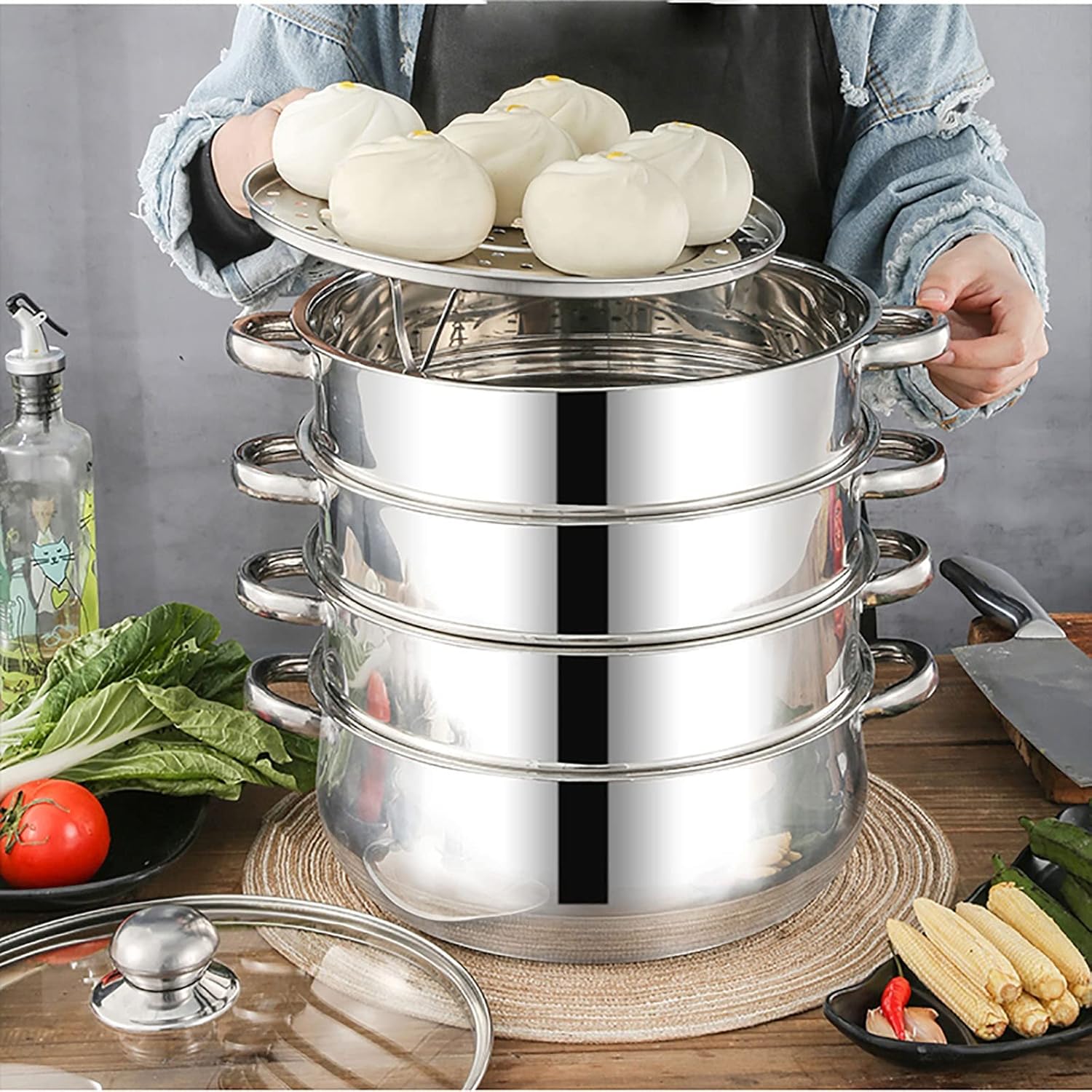 Steamer Pot Soup Pot Hot Pot 430 Stainless Steel Steamer,3-Layer Composite Pot Bottom,Steamed Seafood,Steamed Buns Cookware Pot Steamer Set/34Cm (28cm