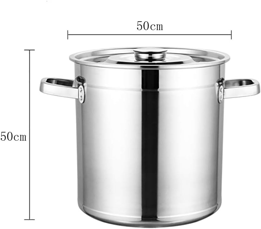 Large 3-Layer Composite Bottom,Food Grade 304 Stainless Steel Soup Barrel Soup Kitchen,Diameter 30cm,Height 30cm (Silver-50cmx50cm