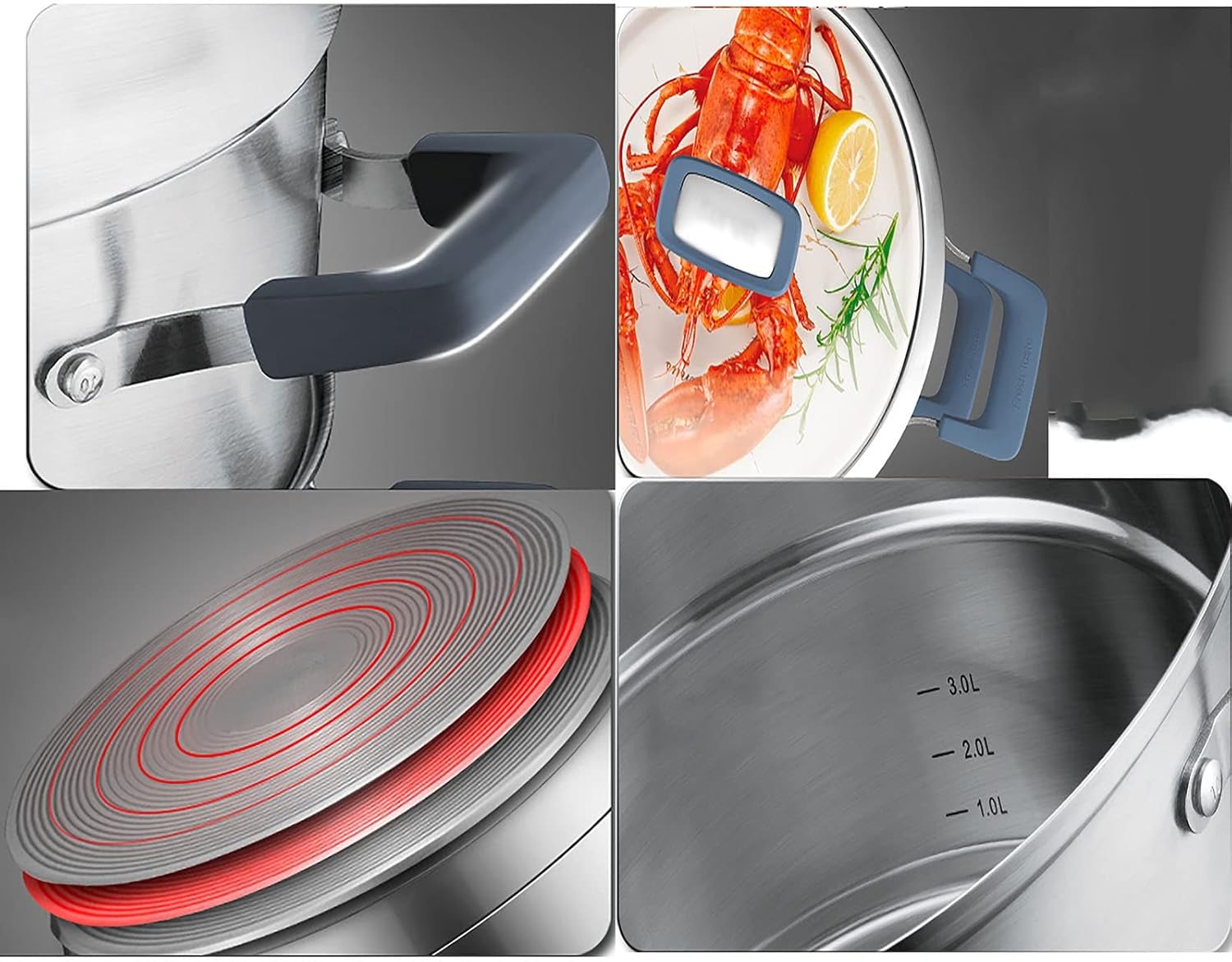 Food Grade 304 Stainless Steel Steamer Pot with 3-Layer Composite Pot Bottom for Steamed Seafood, Fish, and Chicken Soup - Soup Pot for Cooking (28cm