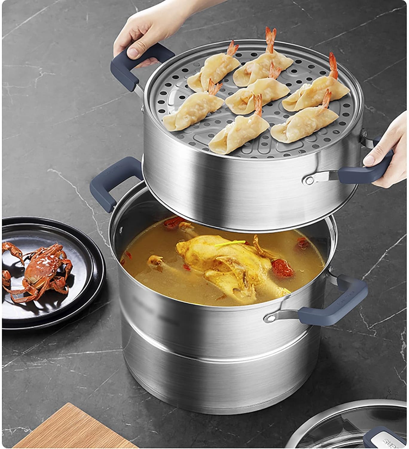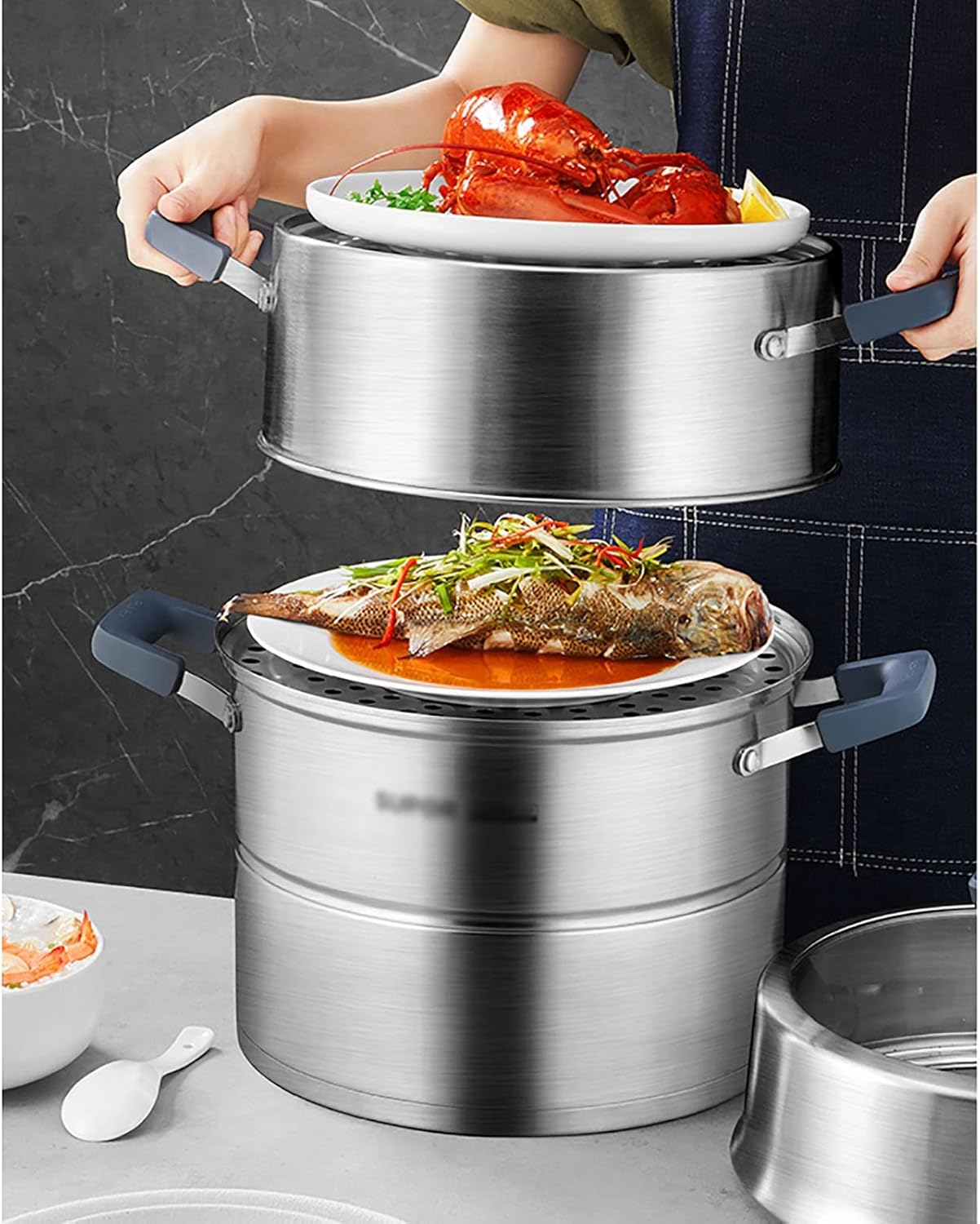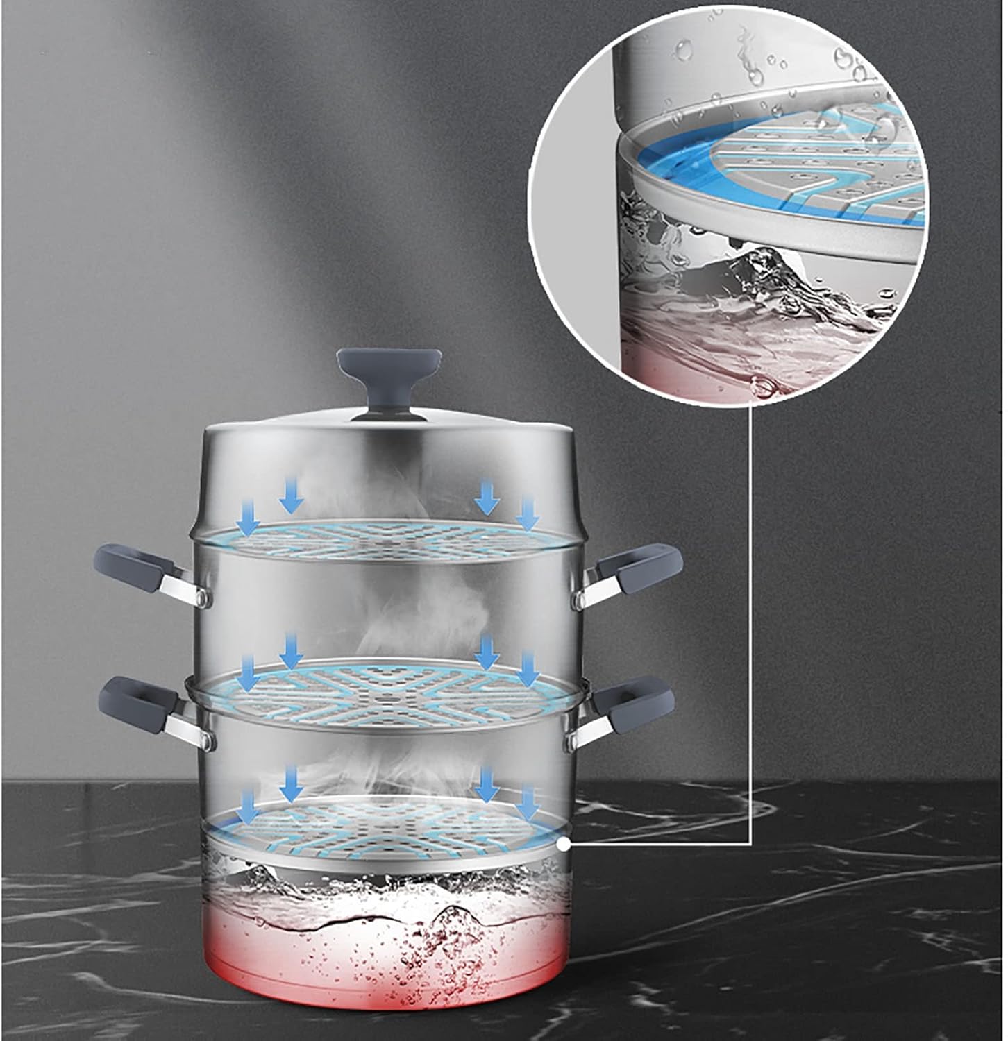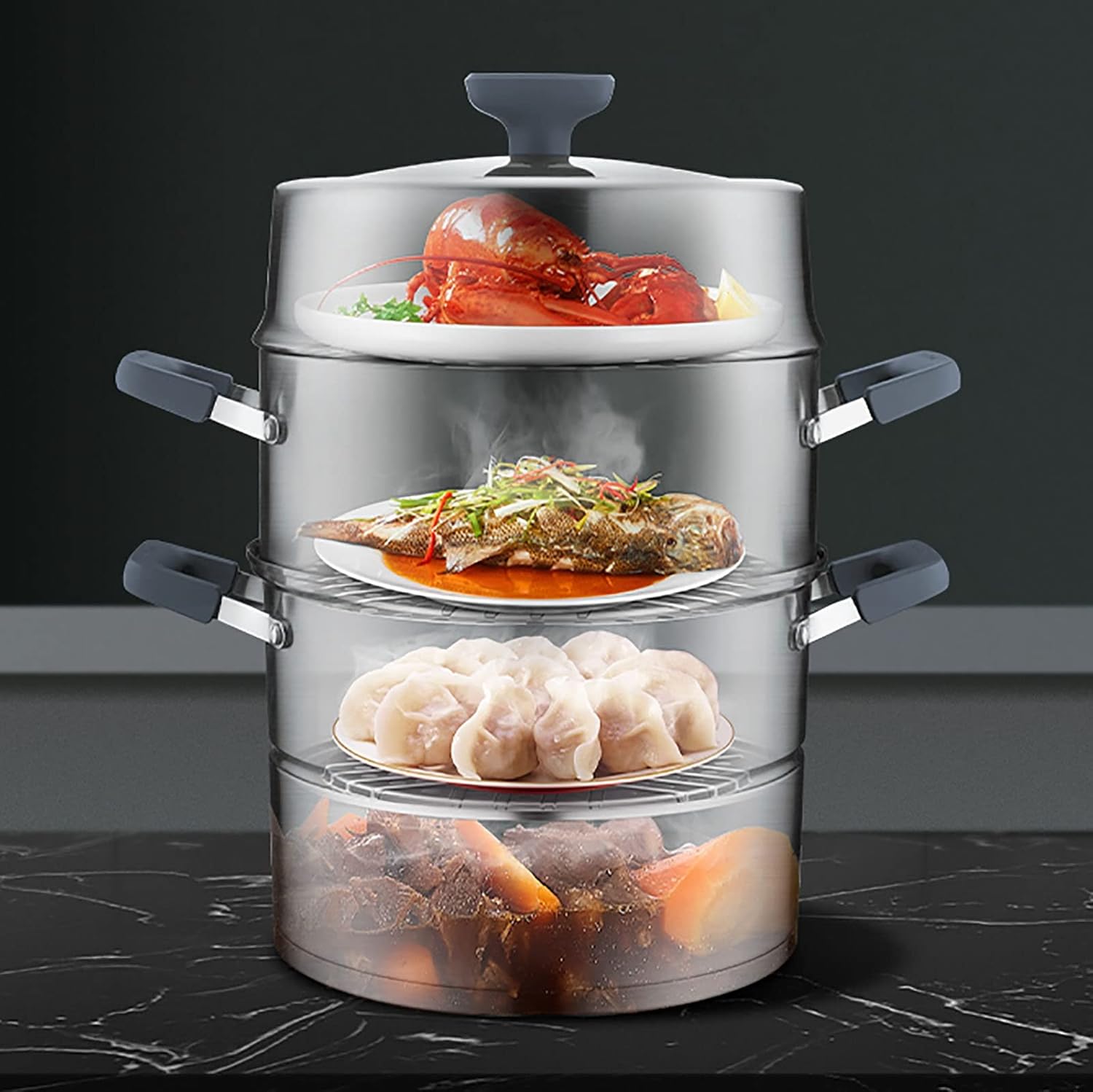 Steamer - XL Stainless Steel 3-Tier/Layer Steamer Cooking Pot, Rice Cooker, Stainless Steel 4 Piece Multi-Cookware Set(One Color-30cm