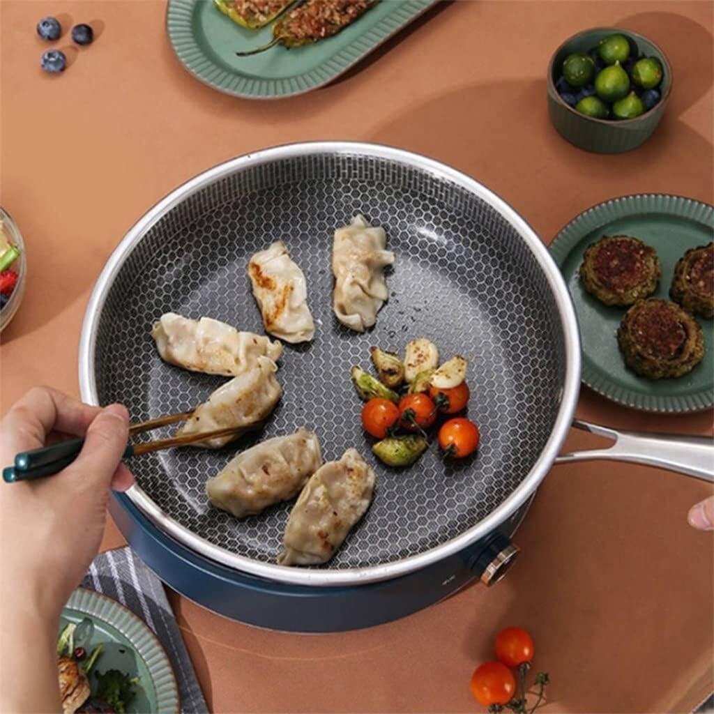 Stainless Steel Wok Thick Honeycomb Handmade Frying Pan Non-Stick Non Rusting Gas/Induction Cooker Pan-D-28cm(30cm)