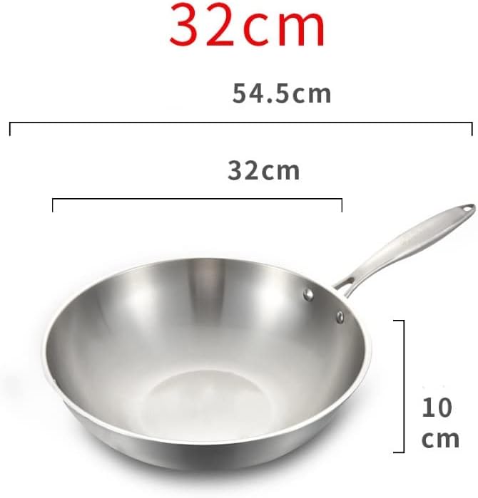 Kitchen Frying Stainless Steel Wok Uncoated Non-Stick Induction Compatible Suitable for Gas Stove Induction Cooker,A-32cm
