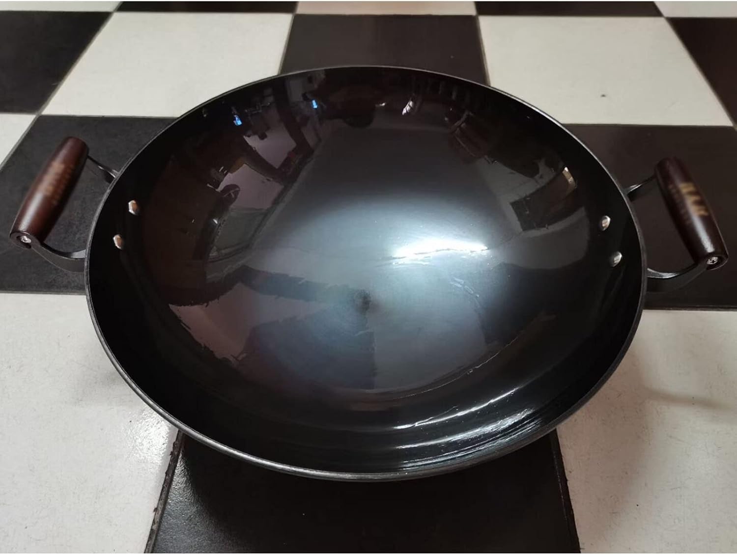 Cast Iron Wok, Double Ear Cast Iron Wok Pot, Household Large Iron Wok,46Cm,46cm