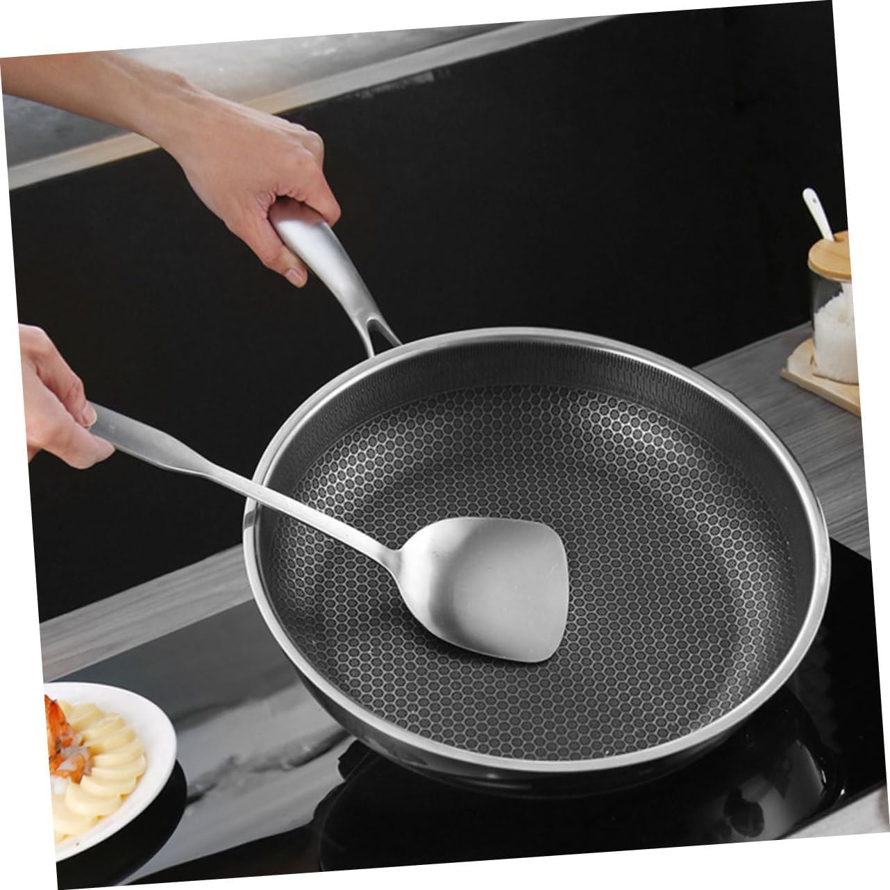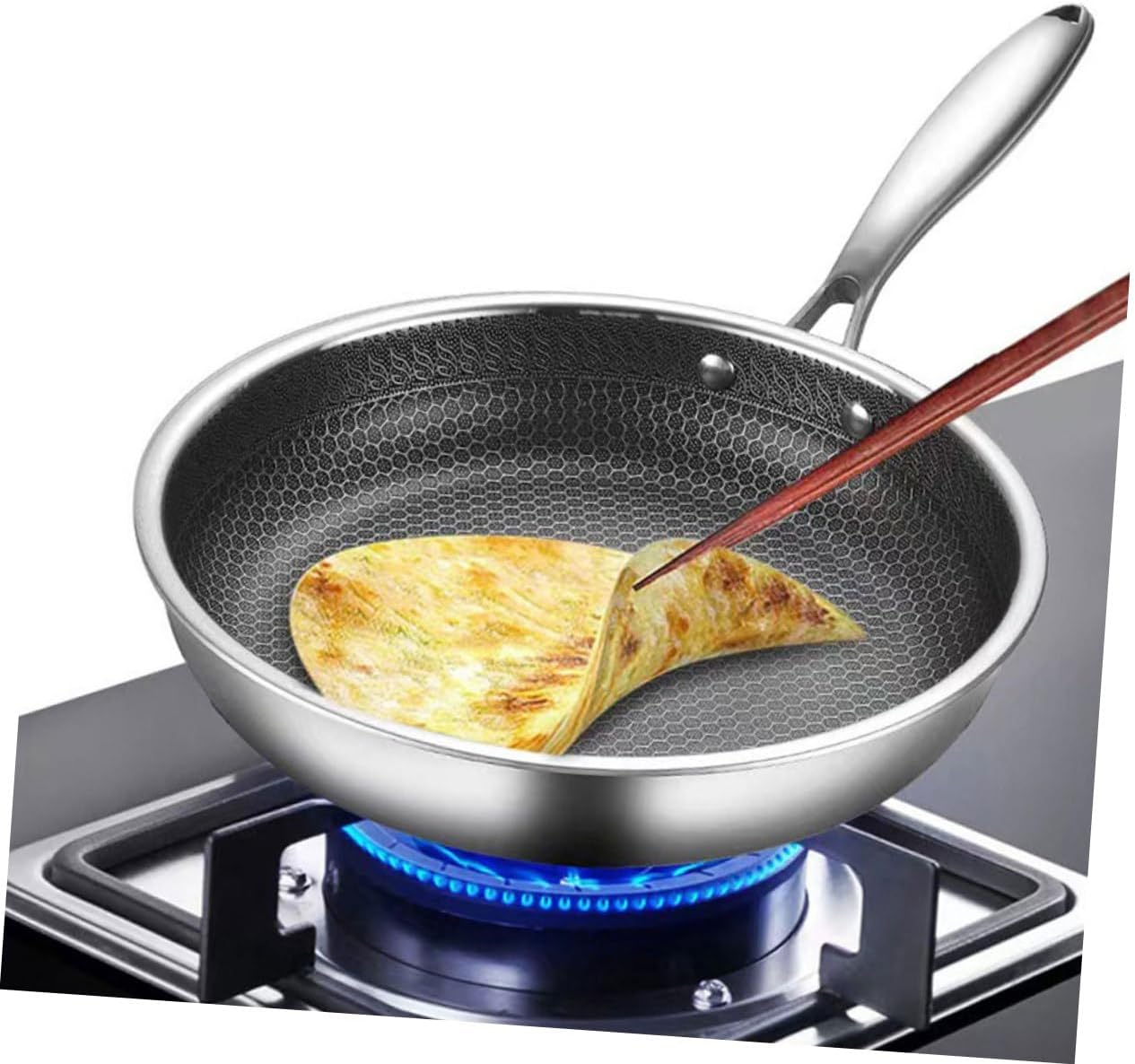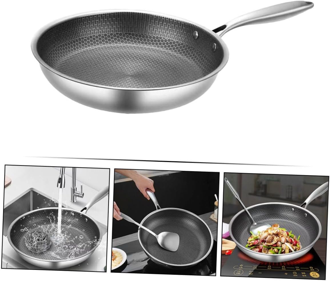 304 Stainless Steel Frying Pot 28Cm Fried Steak Pot Double-Sided Honeycomb Kitchenware Wok