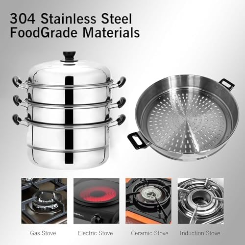 Large 3-Tier Stainless Steel Steamer Pot for Induction Cooking, Versatile Steam Pot for Healthy Meals, Durable and Efficient, 40cm Capsule Bottom Design
