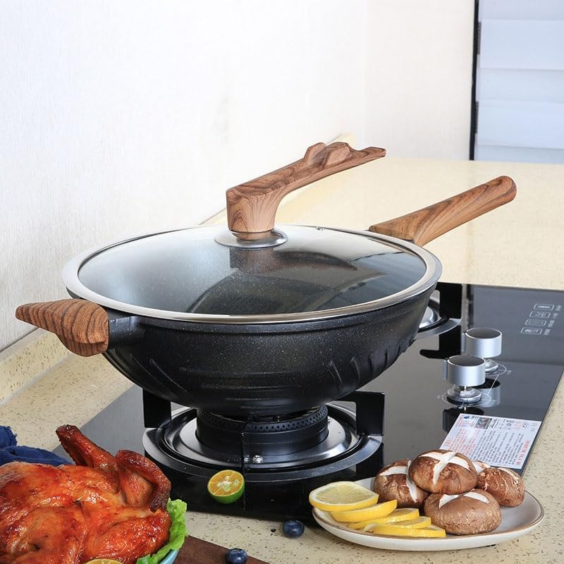Carbon Steel Wok Stir Fry Pans with Lid Kitchen Cookwar for Electric Induction and Gas Stoves Flat Bottom