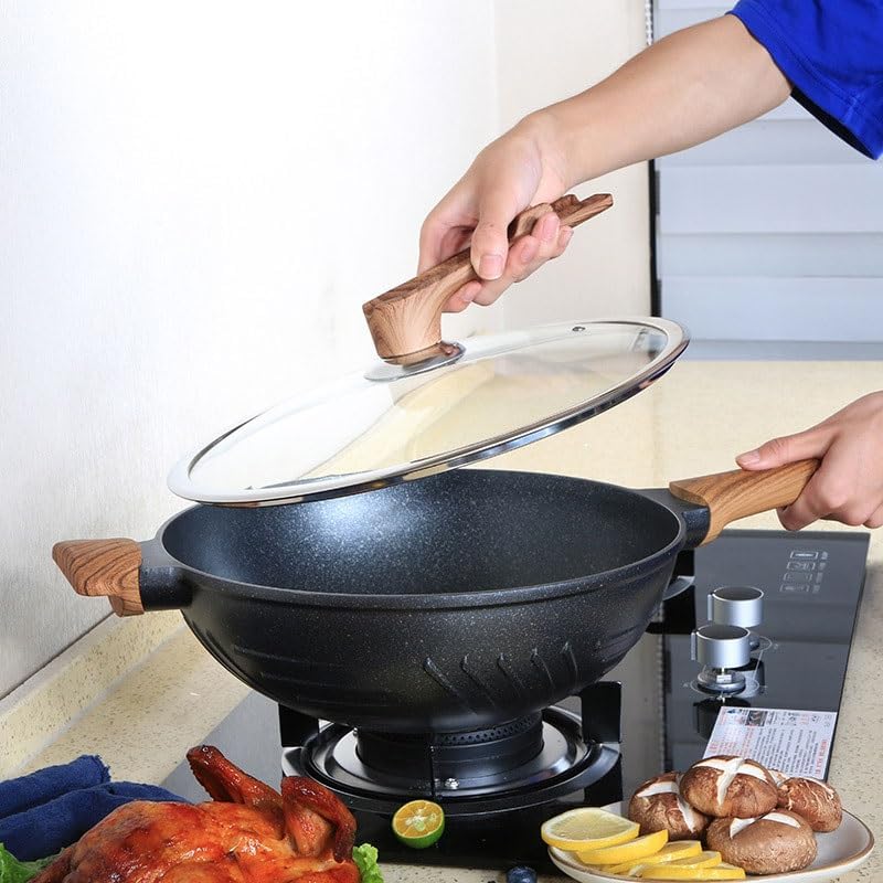 Frying Pan Non-stick Kitchen Cookware with Lid Handle Wok Cooking Pot
