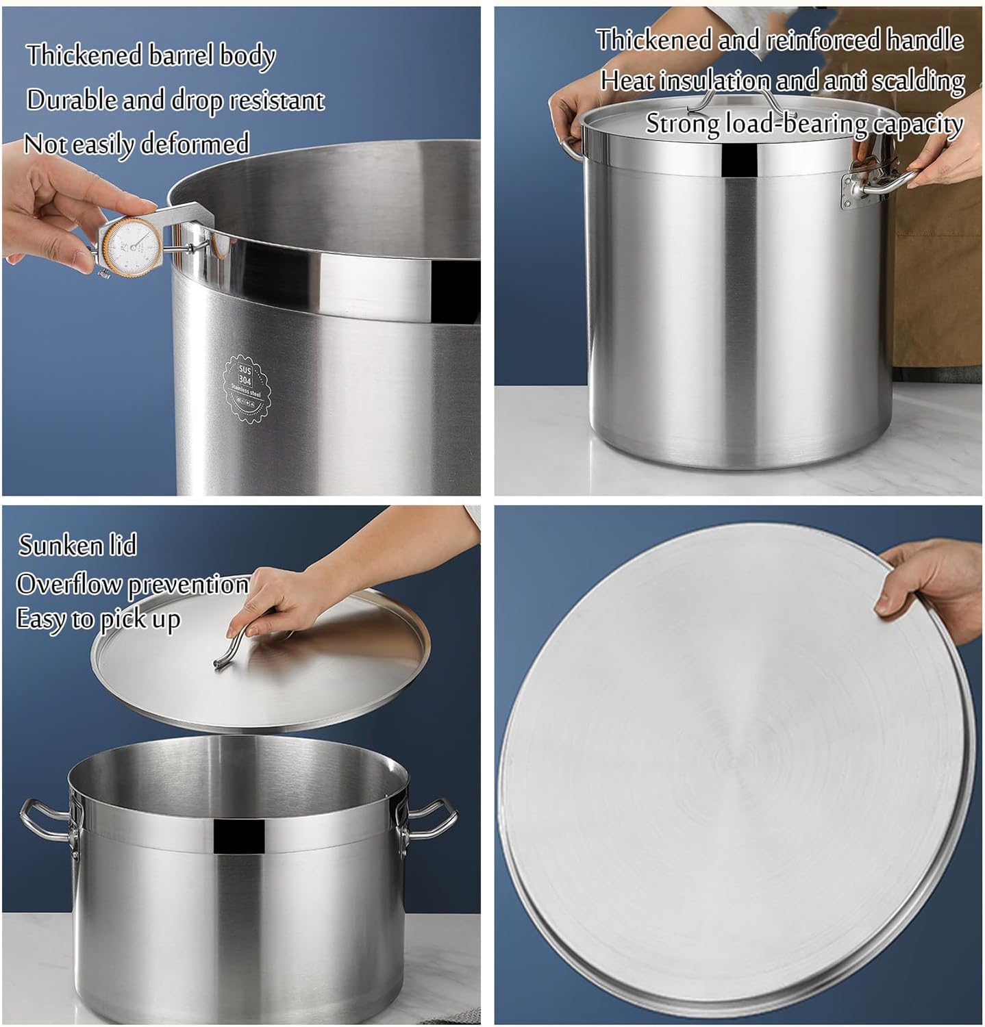 Stainless Steel Stock Pot,Induction Pot with Lid,Multipurpose Sauce Pot/Cooking Pot/Crock Pot,for Gas Stove/Induction Cooker,One Color-58L