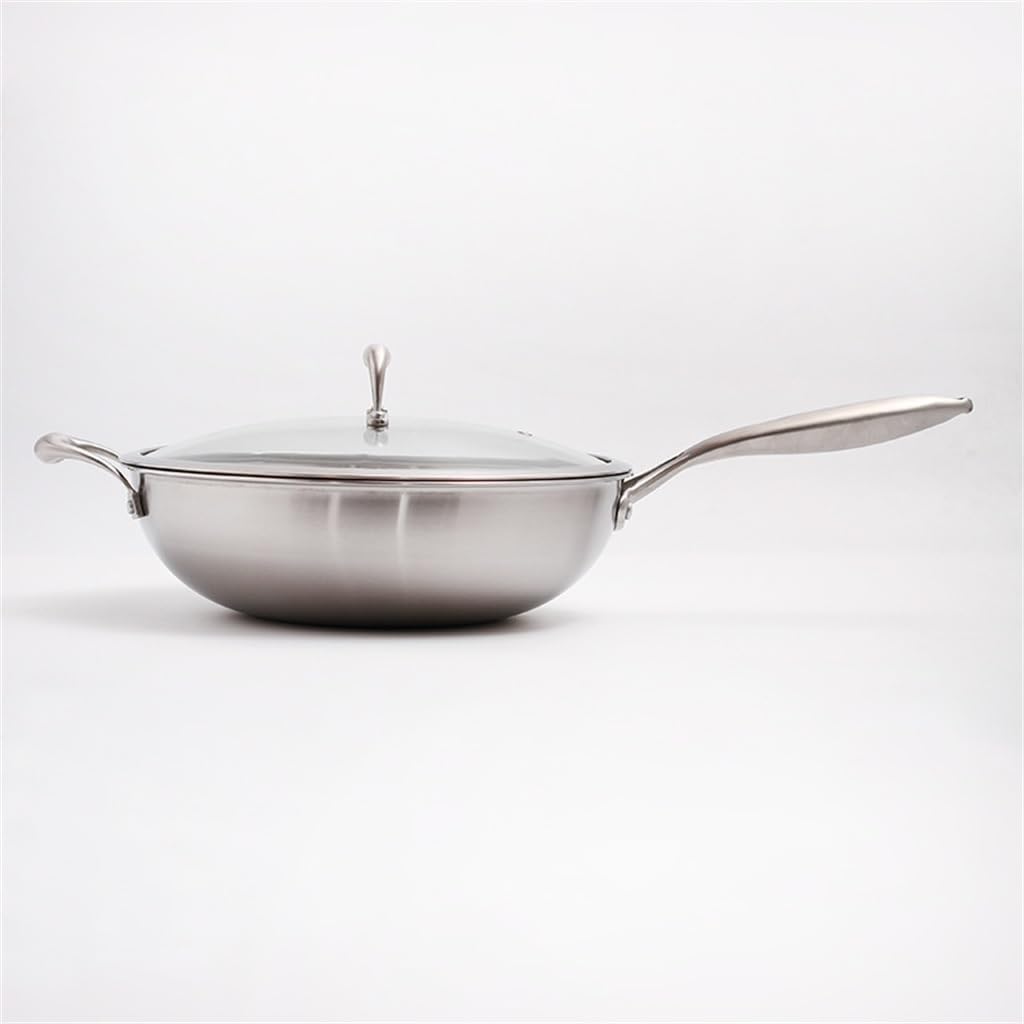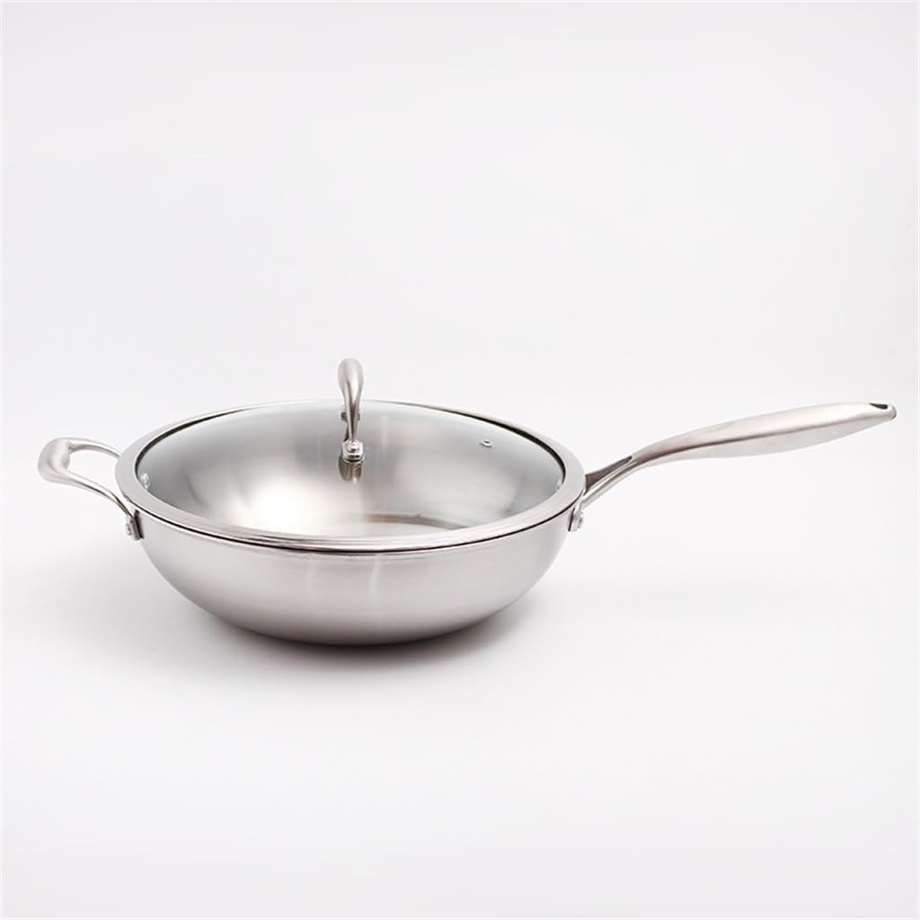 304 Stainless Steel Flat Bottom Wok Household Less Lampblack Non-stick Pan Cooker