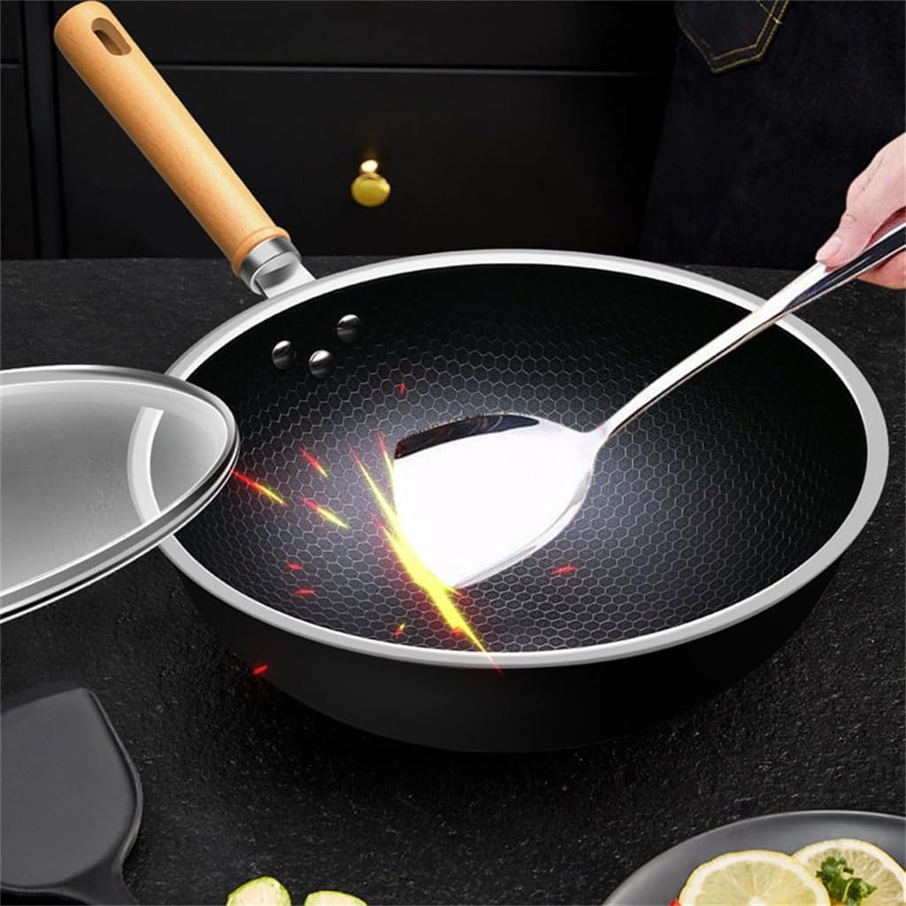 Stainless Steel Frying Pan Non-stick Honeycomb Induction Gas Universal