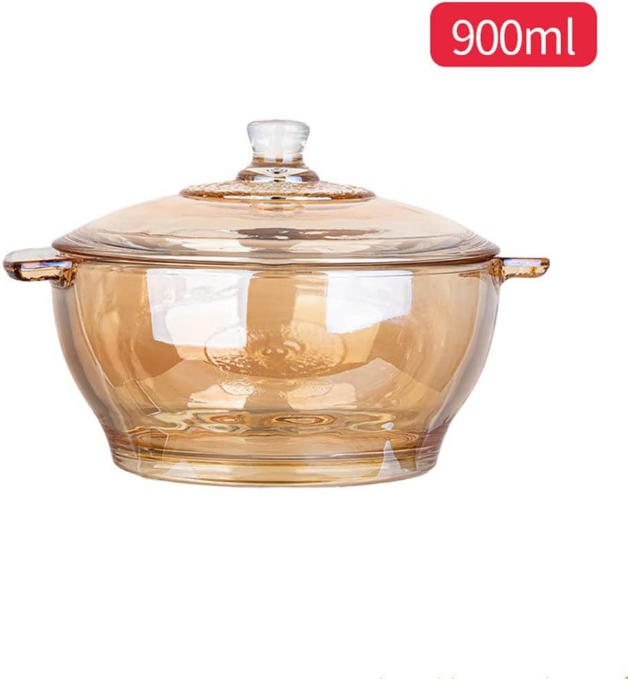 Glass Saucepan Stove Pot for Kitchen Brown with Lid Binaural Instant Noodle Bowl Fruit Salad Crystal Microwave Oven
