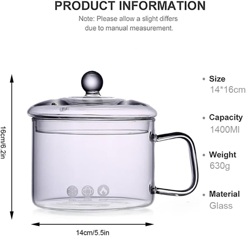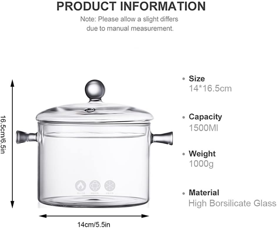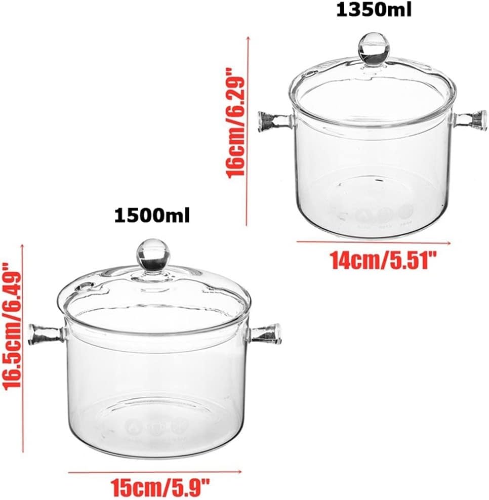 1.5/1.7L Household Transparent Glass Soup Pot Heat-resistant Noodle Gas Cooker Bowl Kitchen Cooking Tools