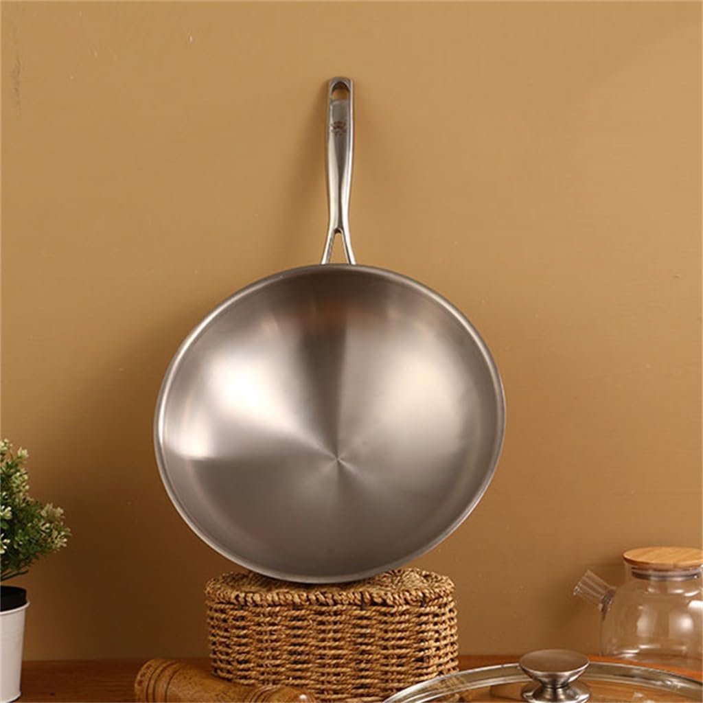 Non-stick Frying Pan Stainless Steel Ear Round Bottom For Home Use on Gas Cooker