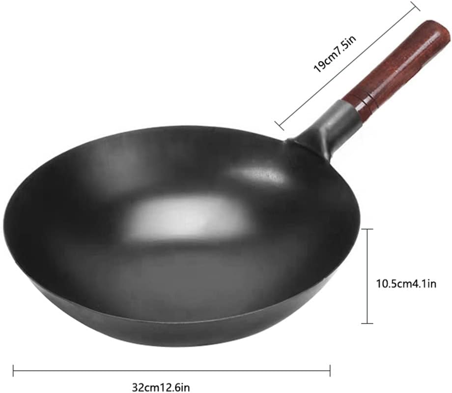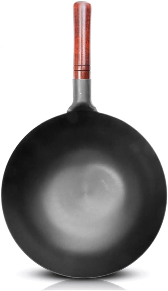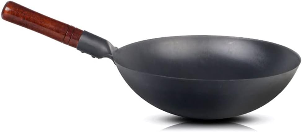 Handmade Traditional Iron Wok,Wooden Handle,Non-coating,Kitchen Cookware Restaurant