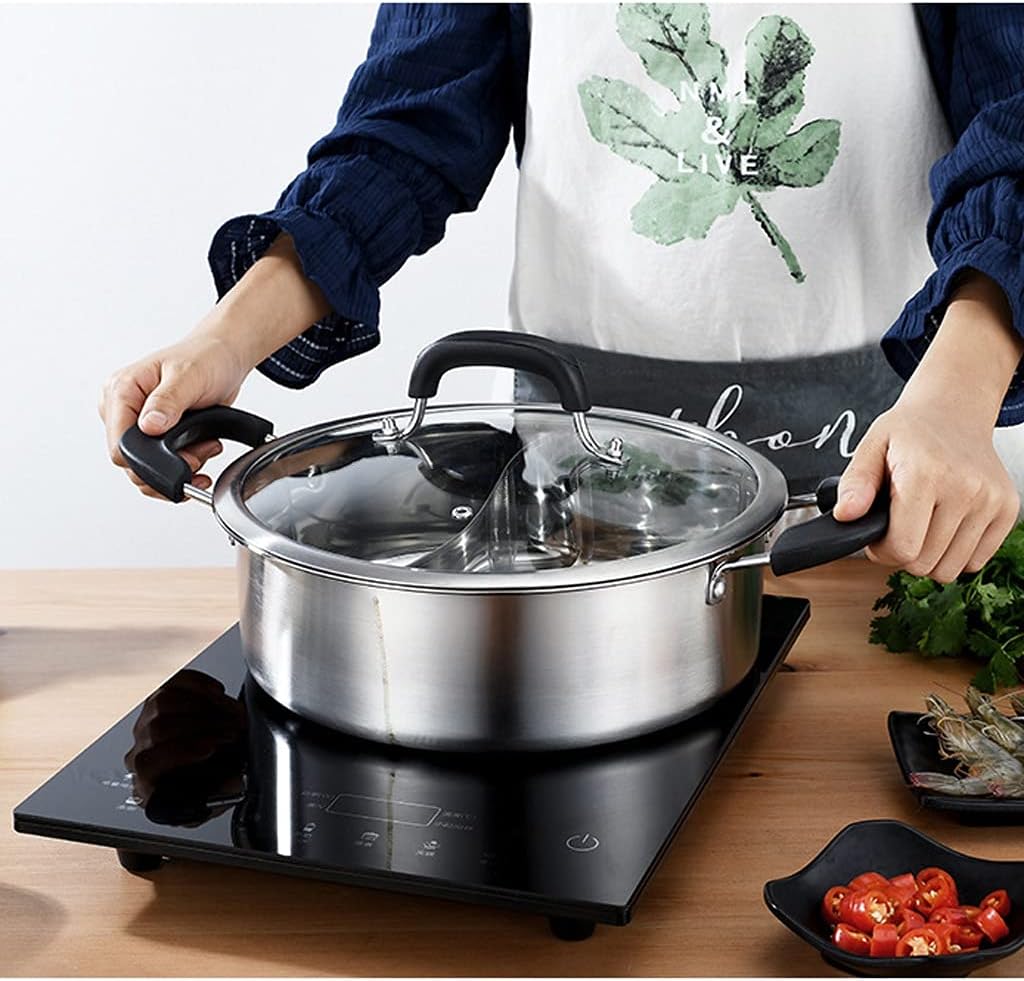 Hickened 304 Stainless Steel Two Flavors Hotpot Special Hot Pot for Induction Cooker Pots for Cooking Soup Dumpling Noodles