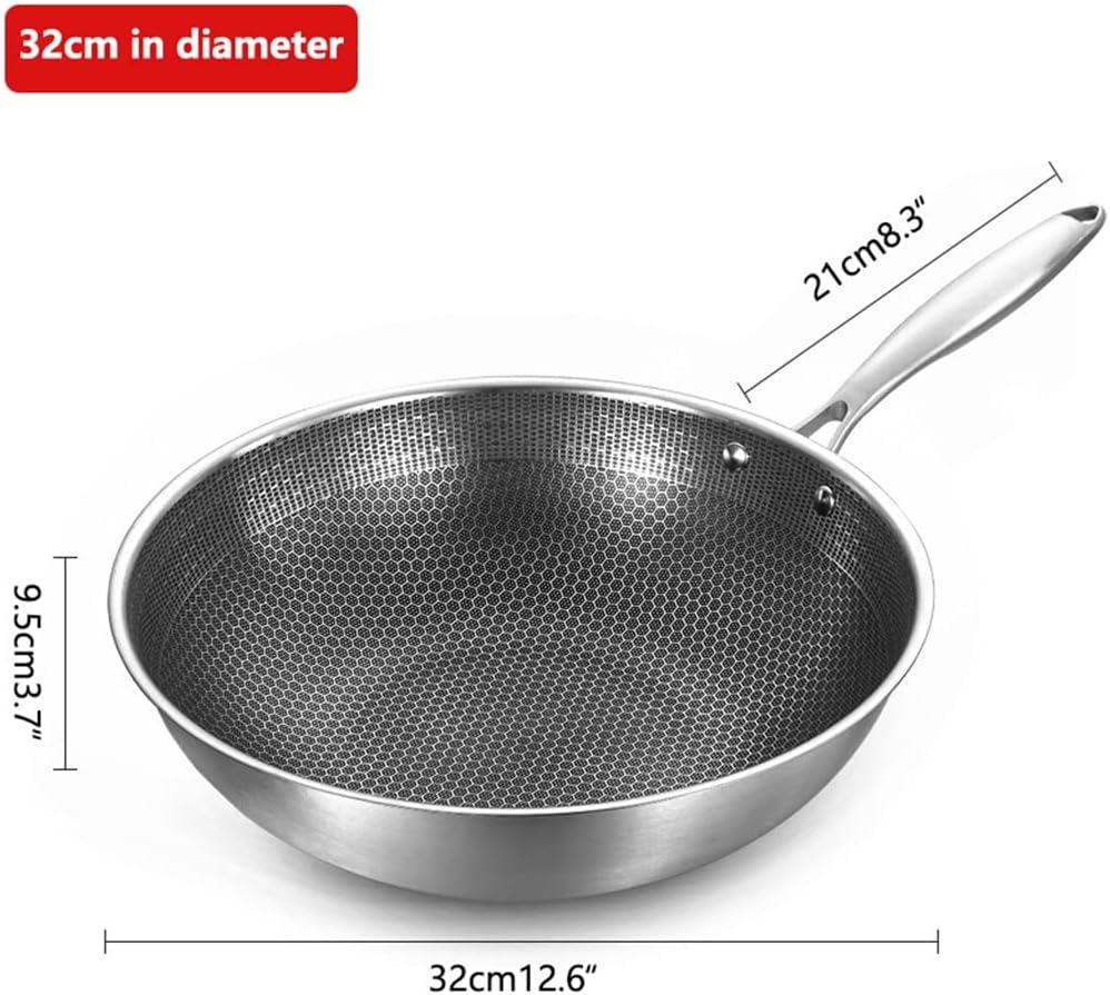 32cmstainless Wok Pan Uncoated Fying Steel Forging For Electric, Induction And Gas Stoves