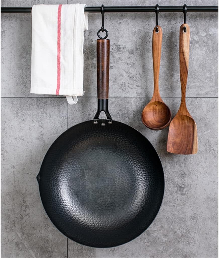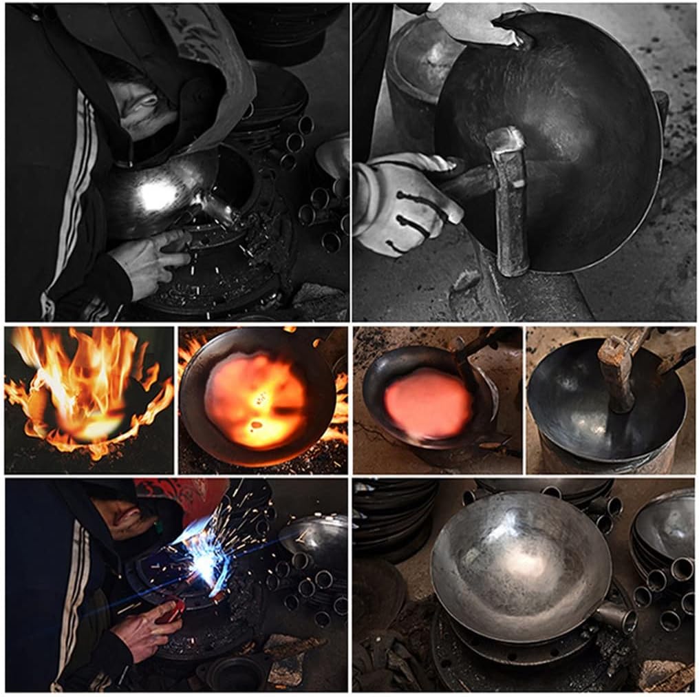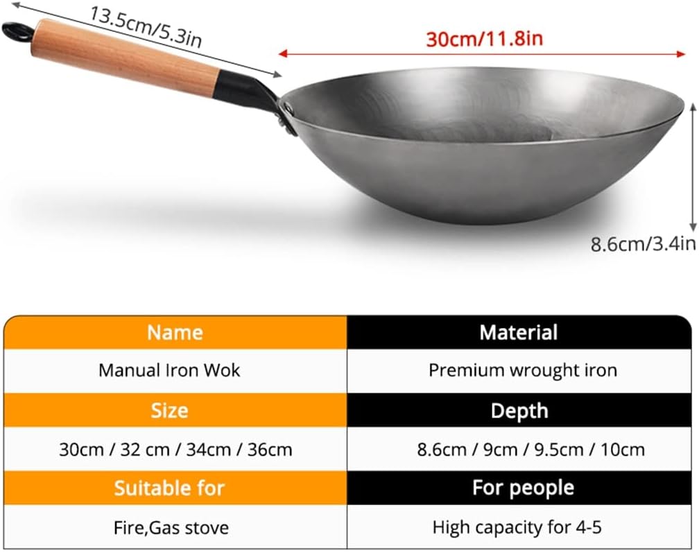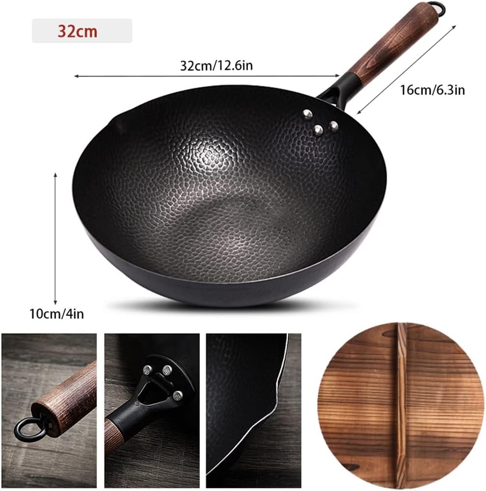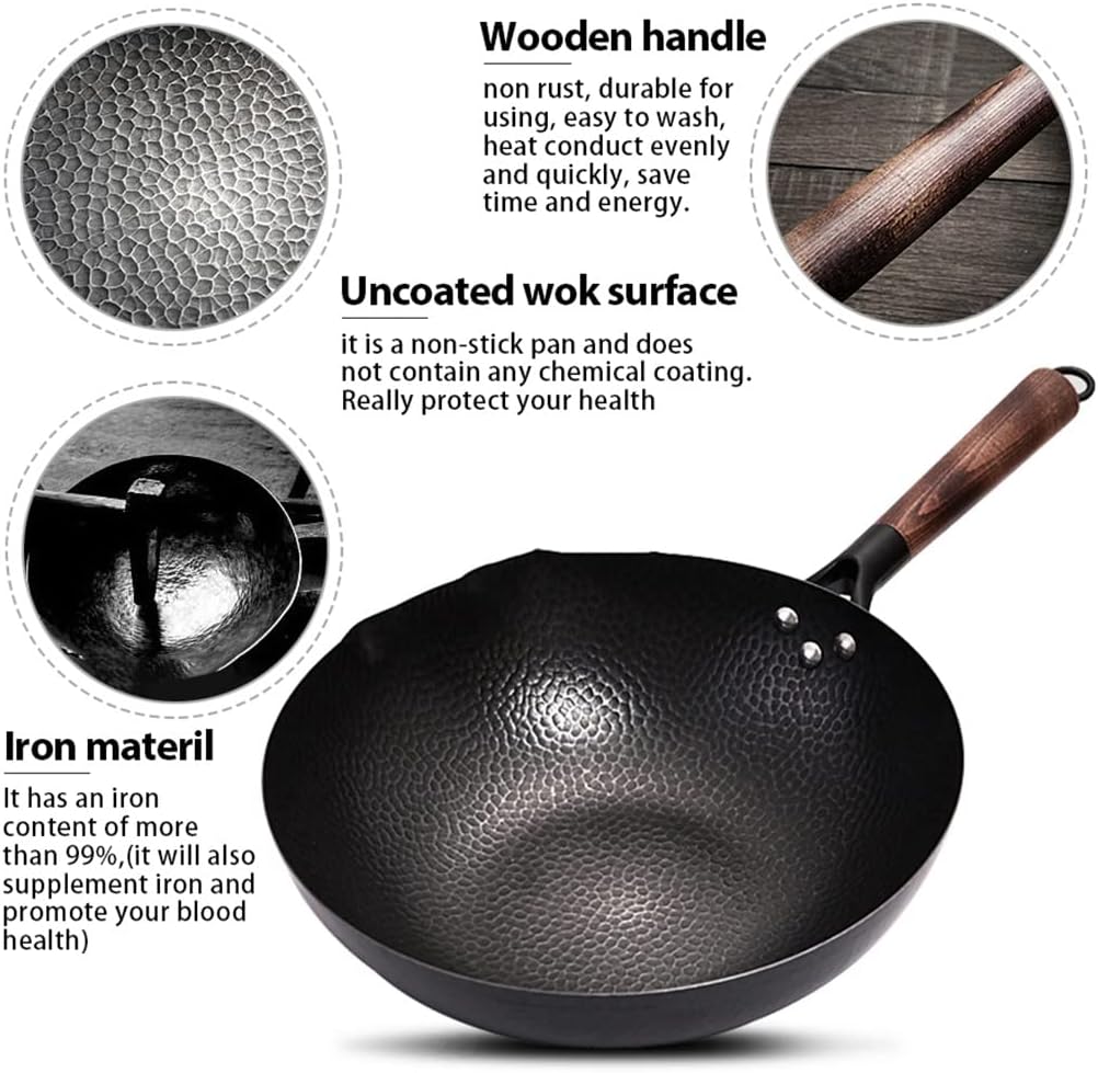Iron wok,Traditional Handmade pan,Non-coated,Non-stick,For Gas and Induction Cooker (32cm)