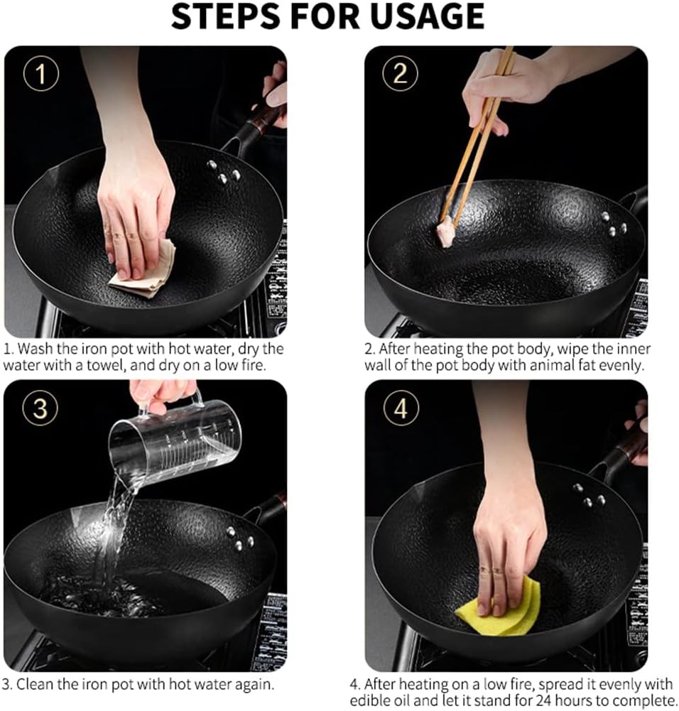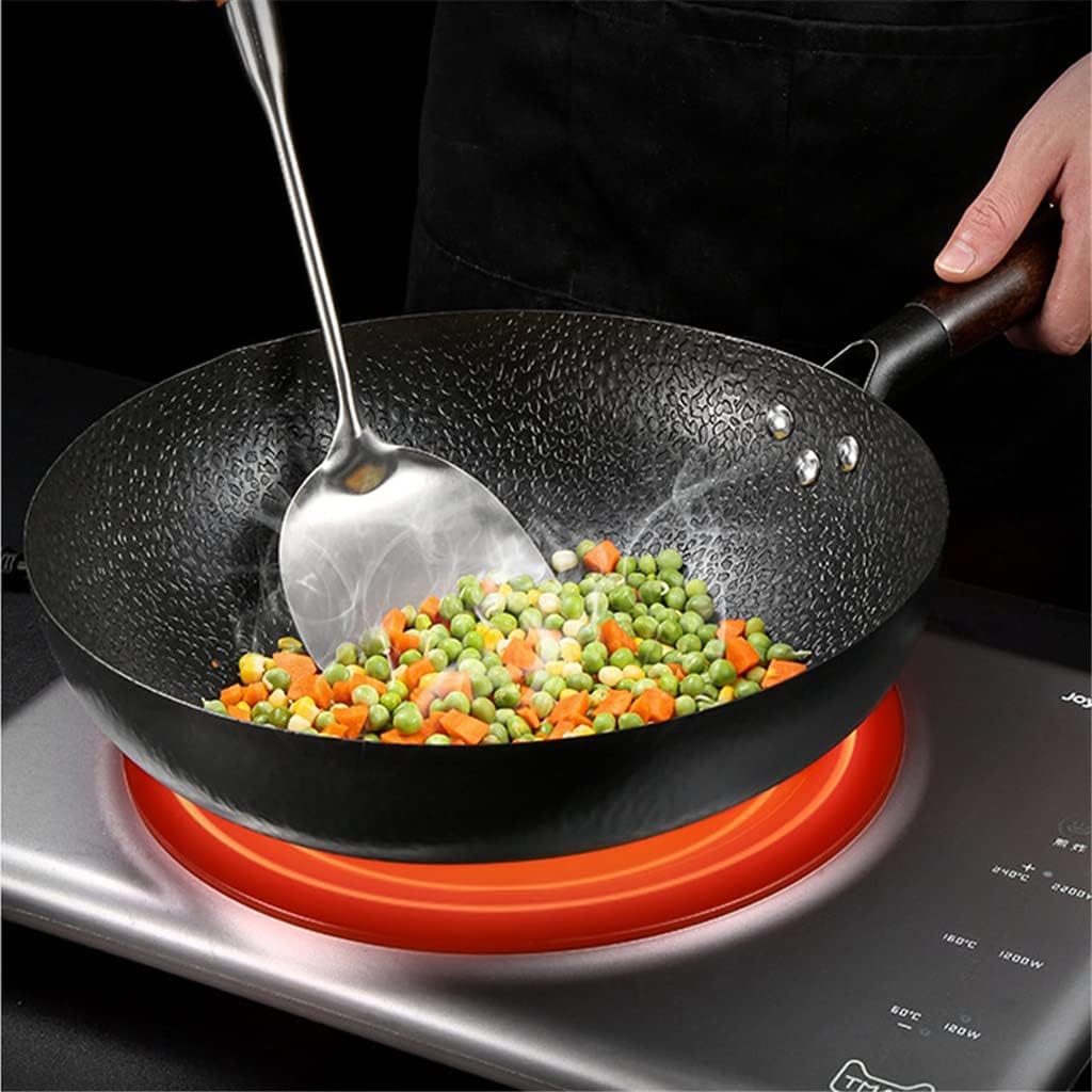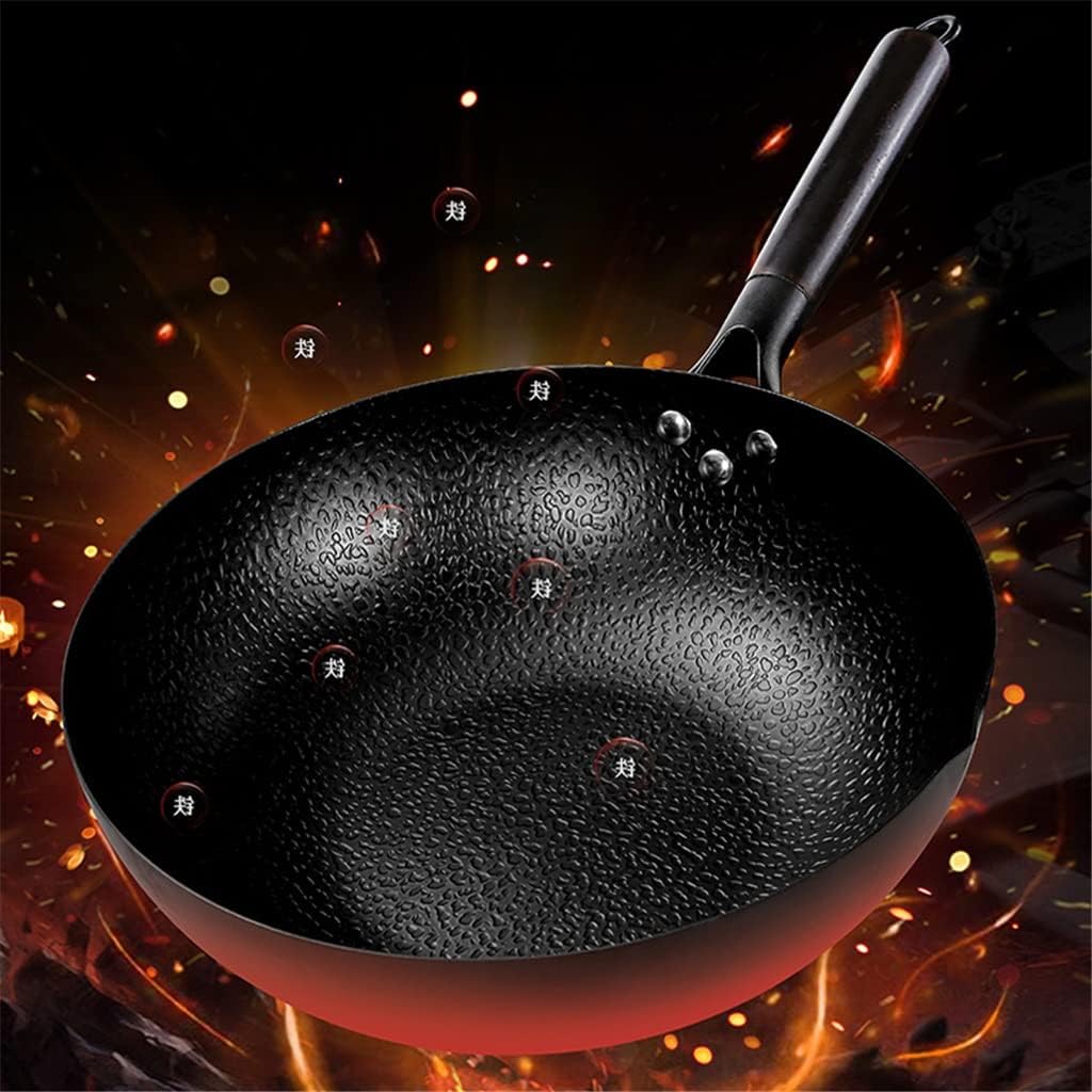 Wok Pan, Stir Fry Flat Bottom,Cast Iron for Electric Stove, Induction Cooker and Gas