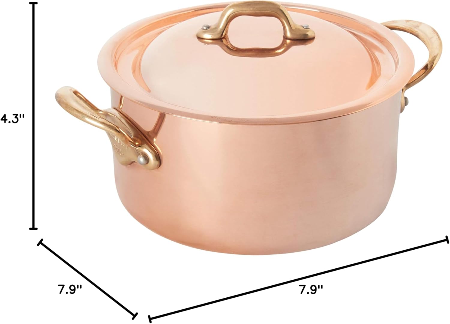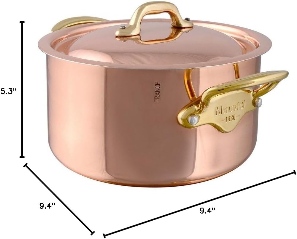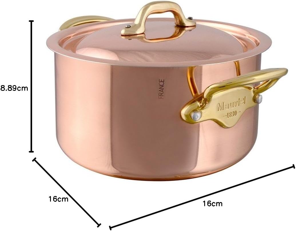 Mauviel M'Heritage 150 B 1.5mm Polished Copper & Stainless Steel Stewpan With Lid & Brass Handles, 3.5-Qt, Made In France