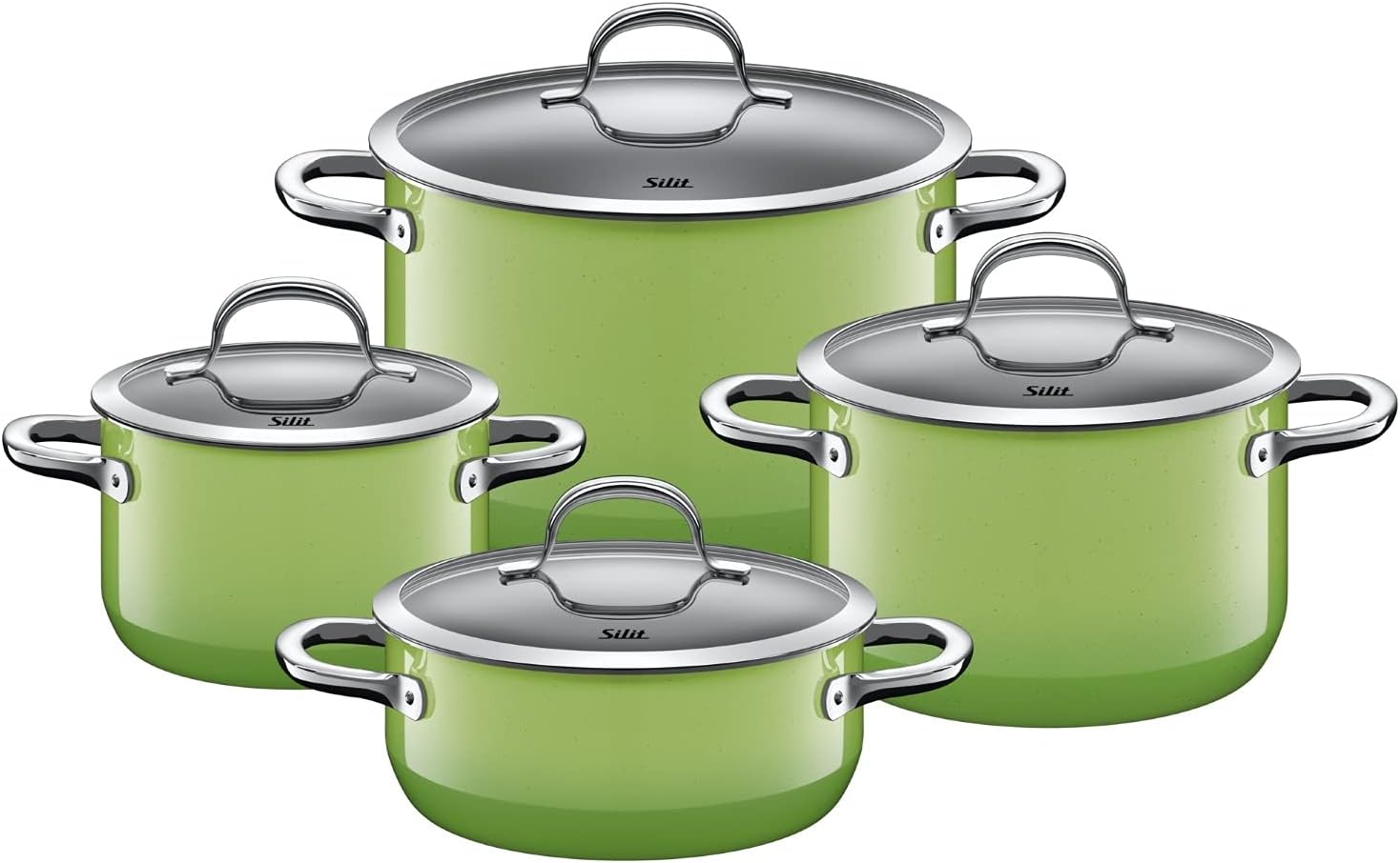 Silit Pot Set 10-Piece Toskana Pouring Rim Glass Lid Stainless Steel Suitable for Induction Hobs Dishwasher-Safe