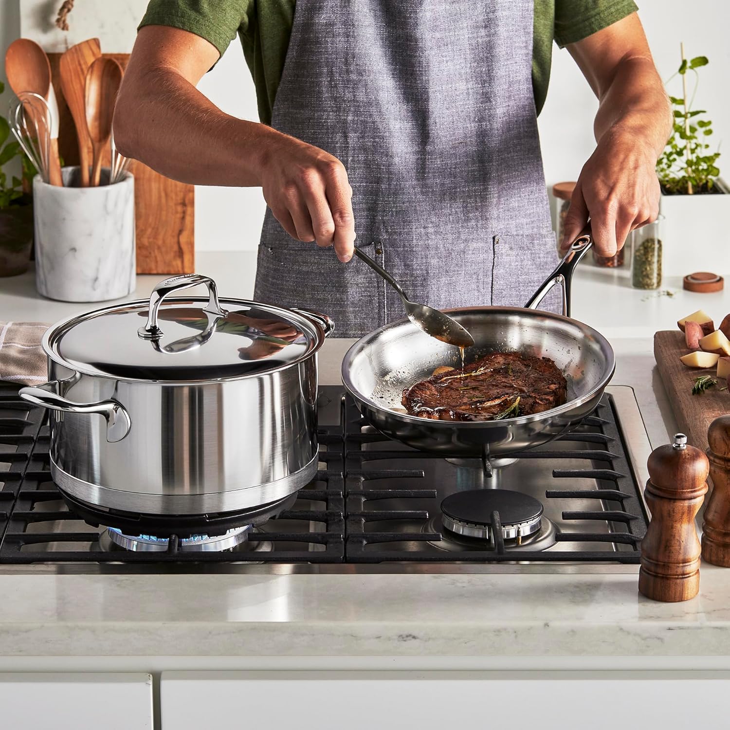 Mauviel M'Cook 5-Ply Polished Stainless Steel 5-Piece Cookware Set With Cast Stainless Steel Handles, Made In France