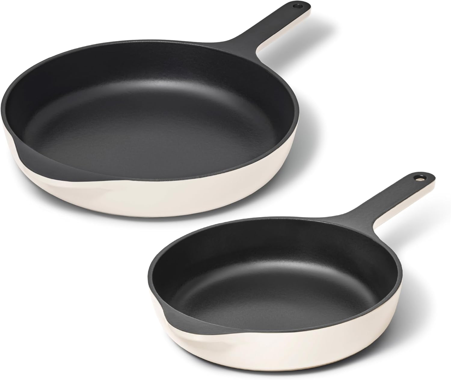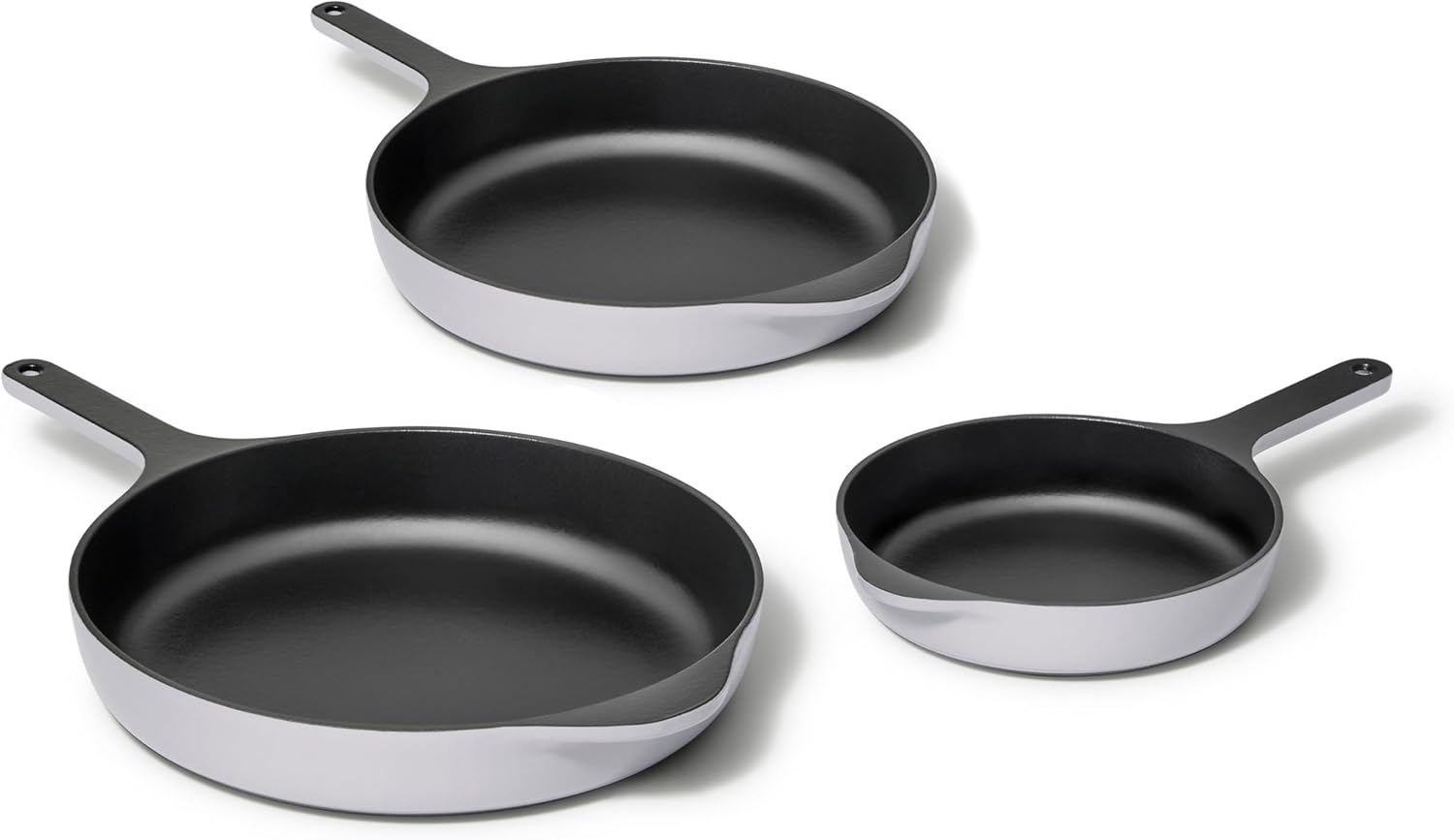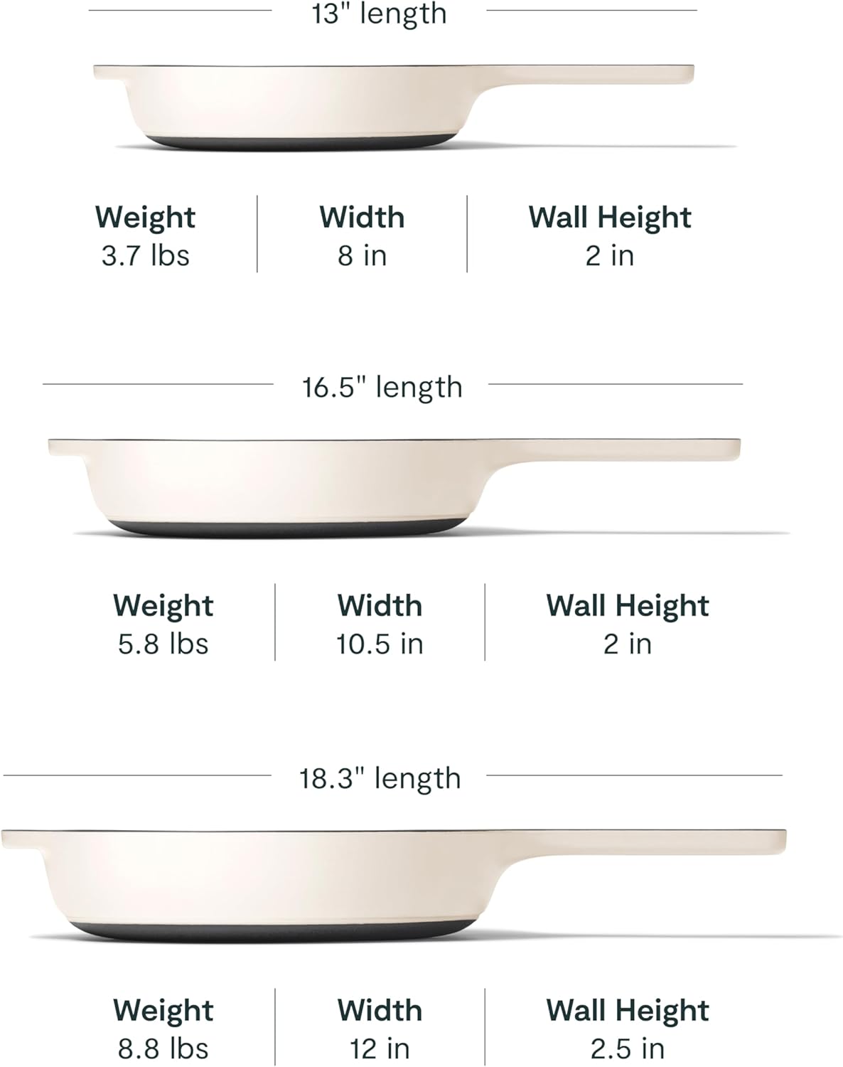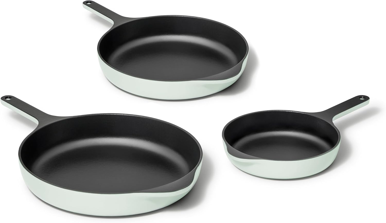 Caraway Cast Iron Skillet Set - 8", 10.5”, & 12" Enameled Cast Iron Pan With 3 Layer Enamel Coating - No Seasoning Required - Compatible With All Stovetops - Free From Forever Chemicals - Cream