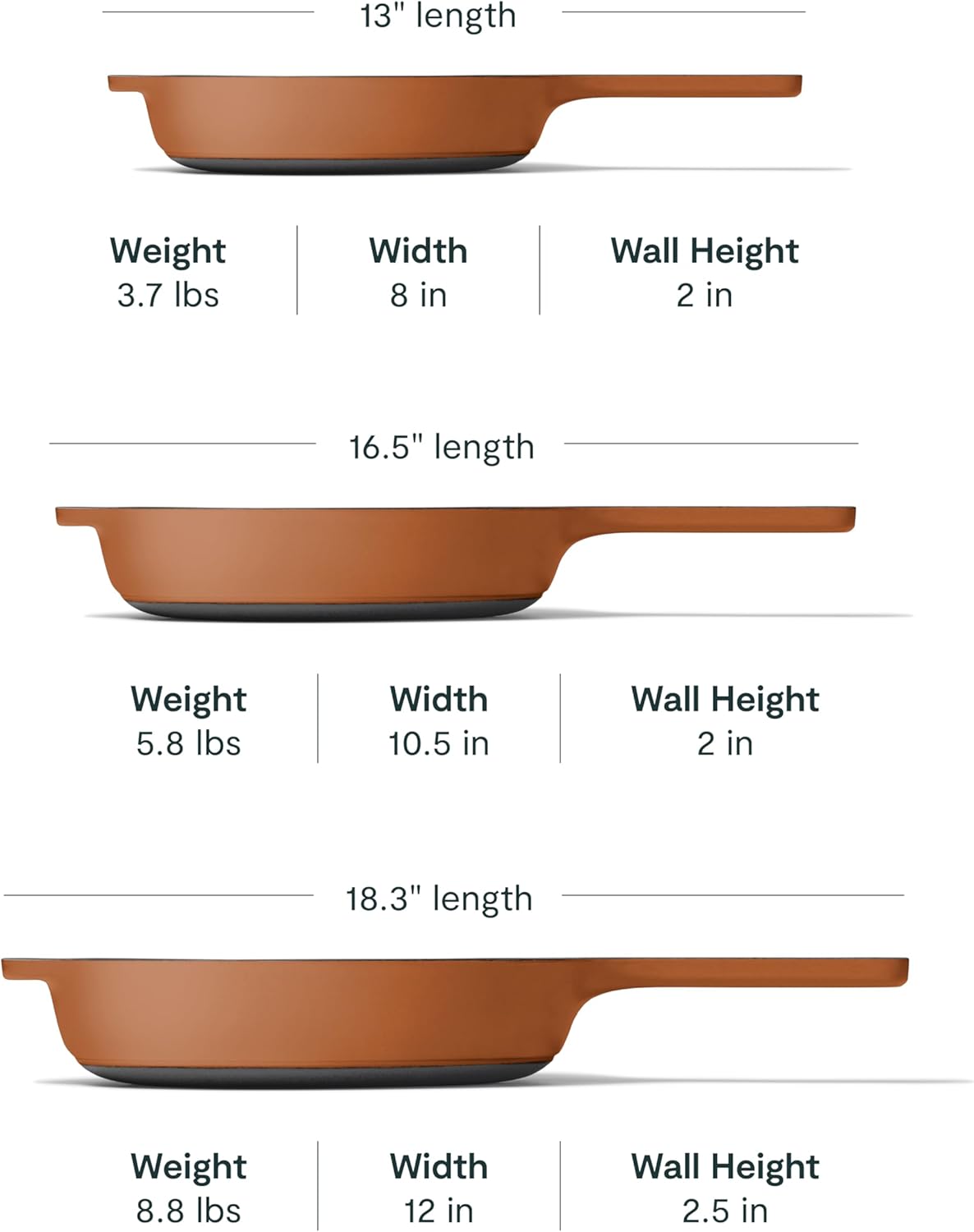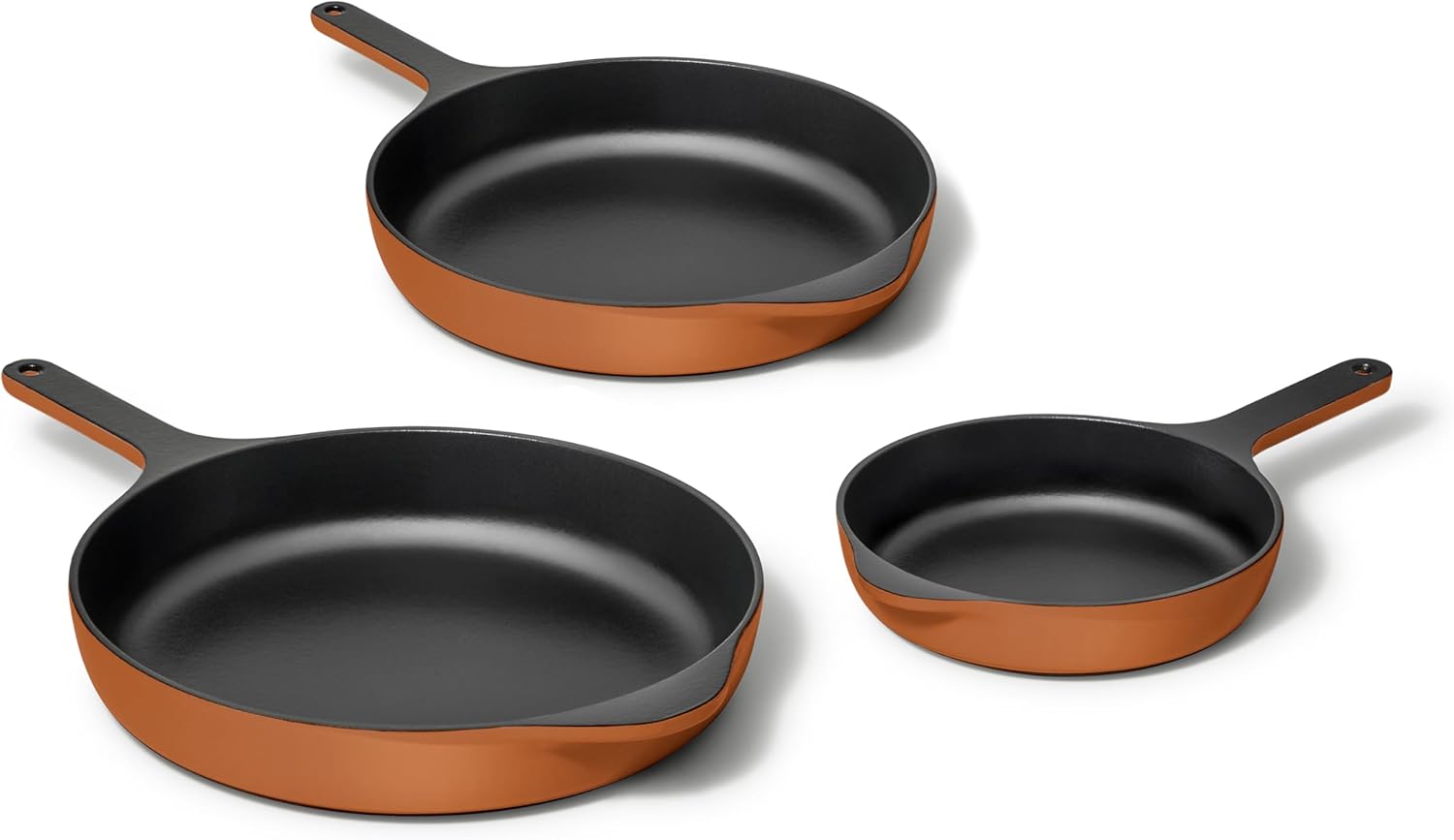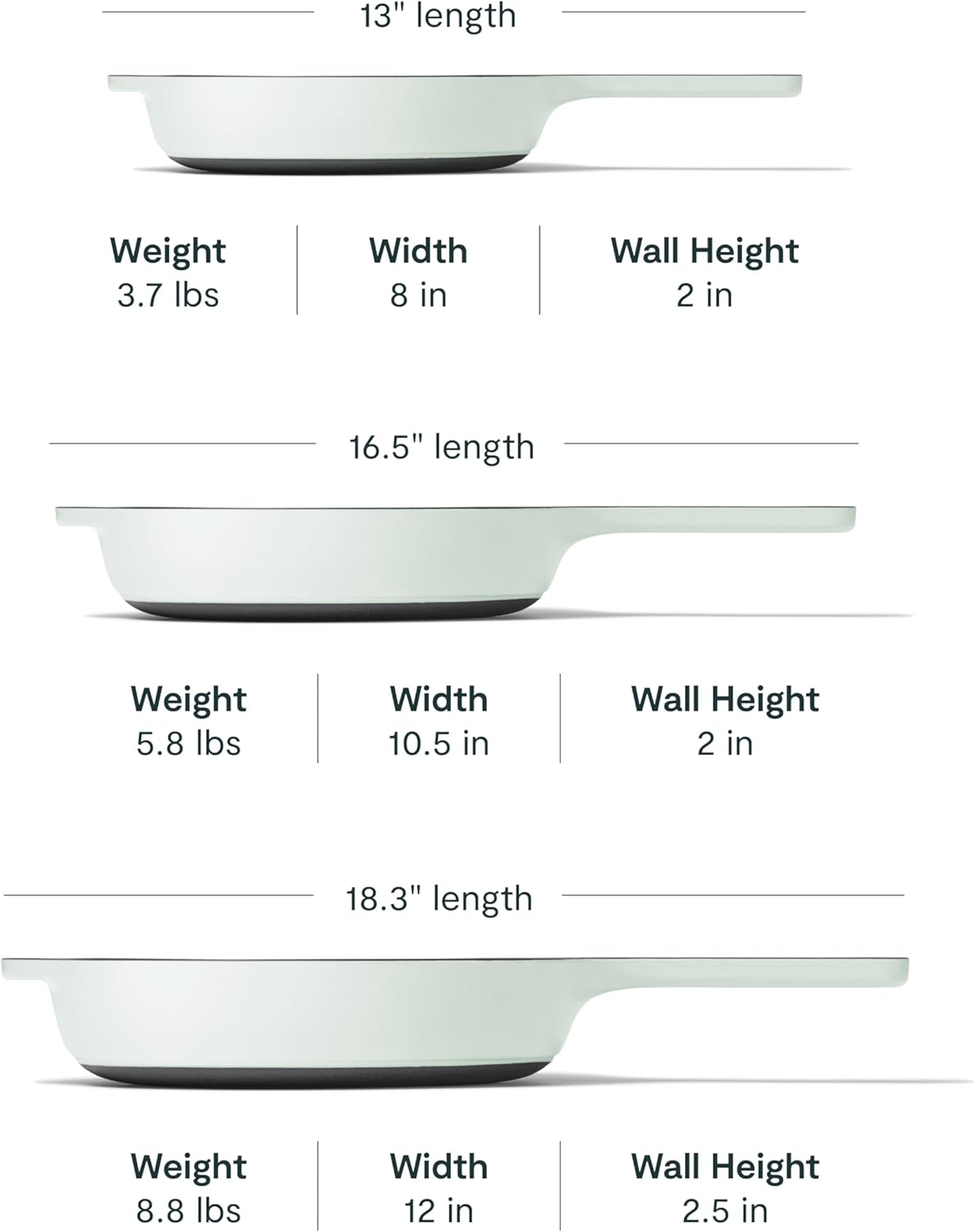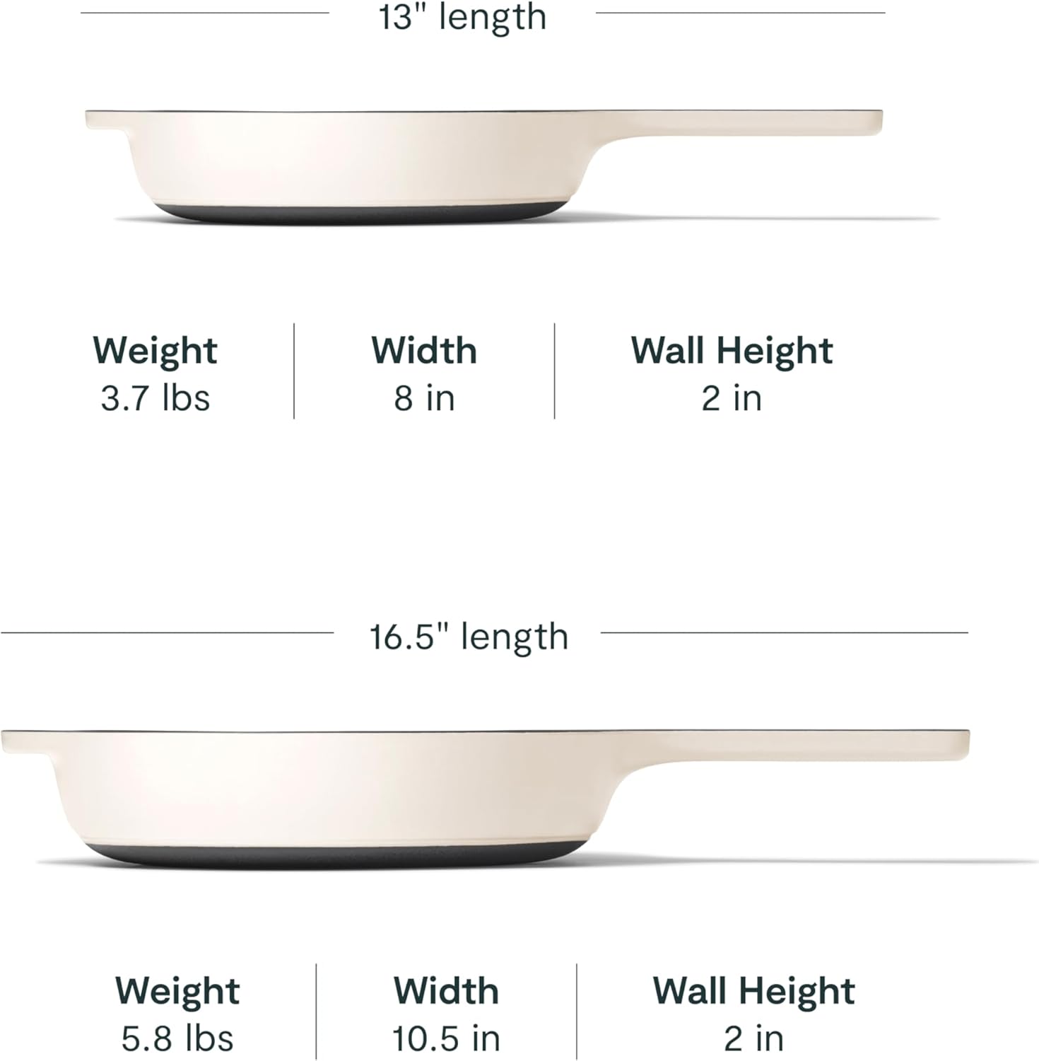 Caraway Cast Iron Skillet Set - 8", 10.5”, & 12" Enameled Cast Iron Pan With 3 Layer Enamel Coating - No Seasoning Required - Compatible With All Stovetops - Free From Forever Chemicals - Cream