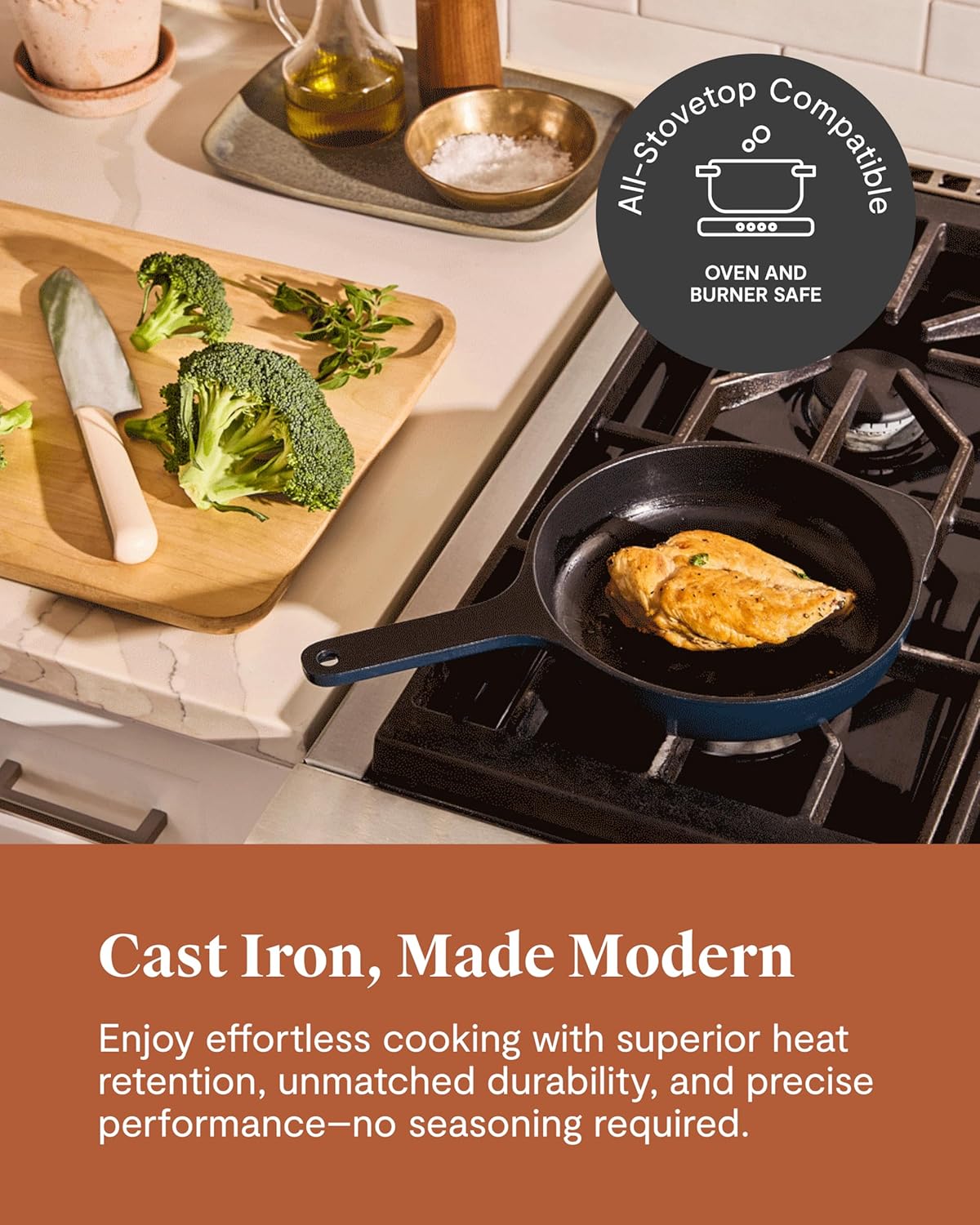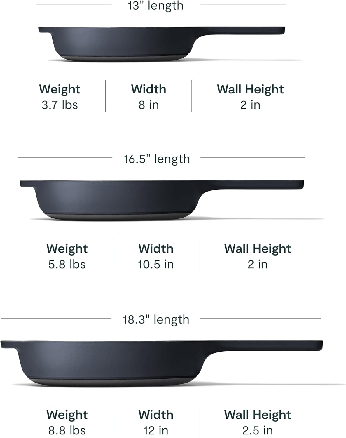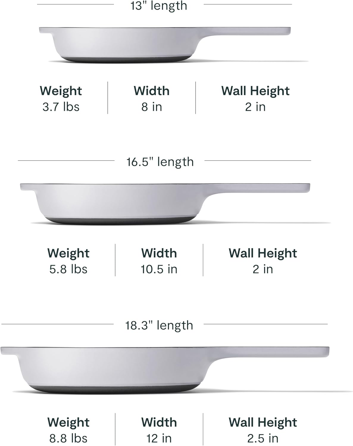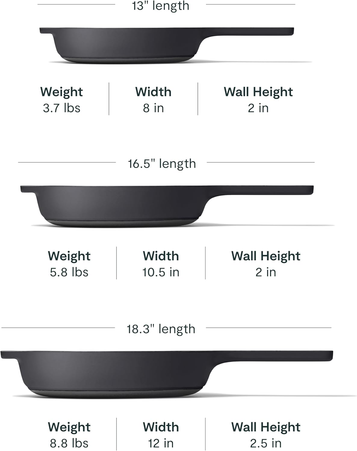 Caraway Cast Iron Skillet Set - 8", 10.5”, & 12" Enameled Cast Iron Pan With 3 Layer Enamel Coating - No Seasoning Required - Compatible With All Stovetops - Free From Forever Chemicals - Cream