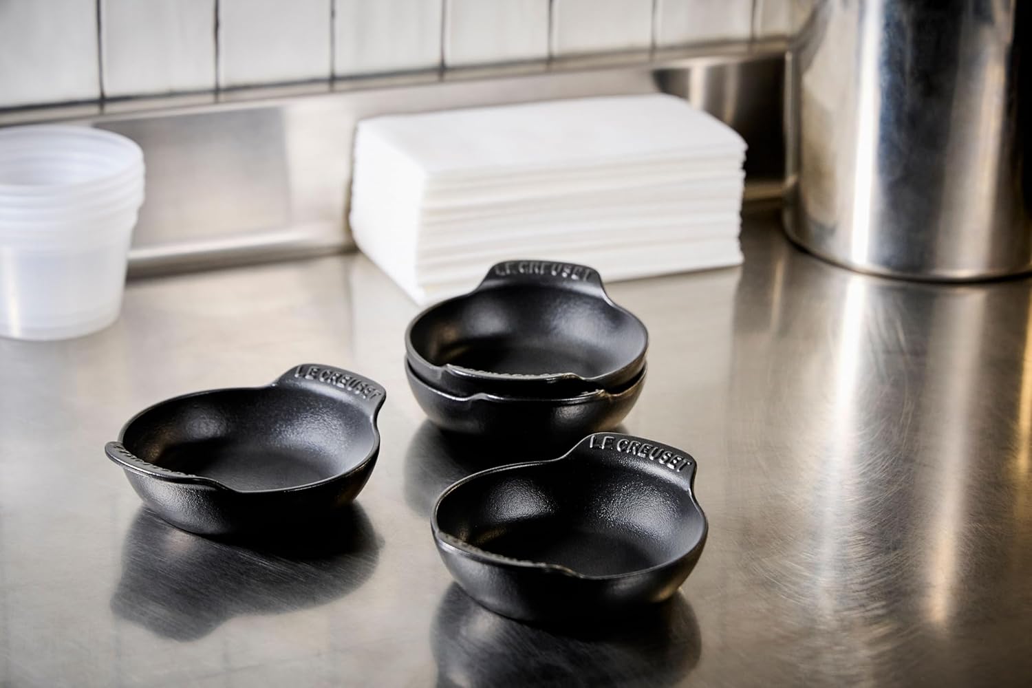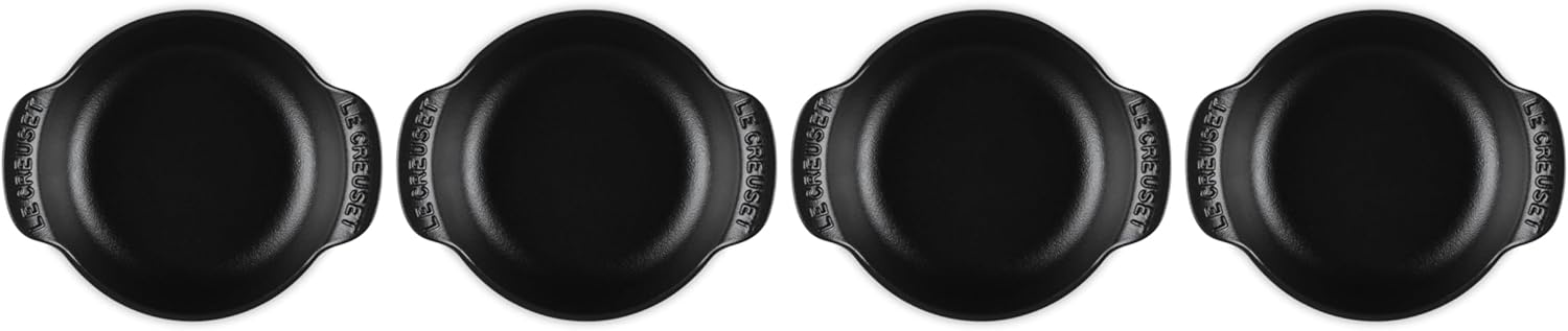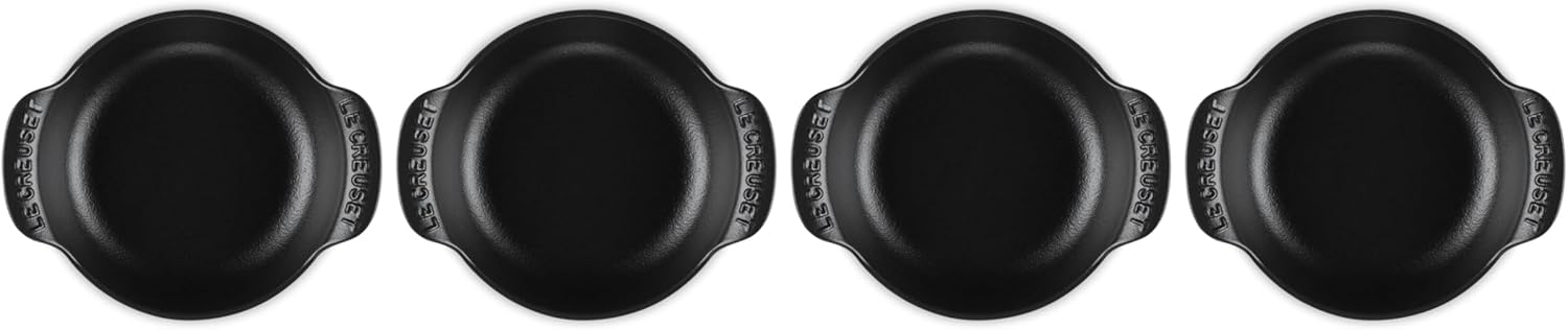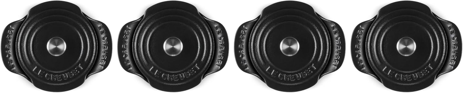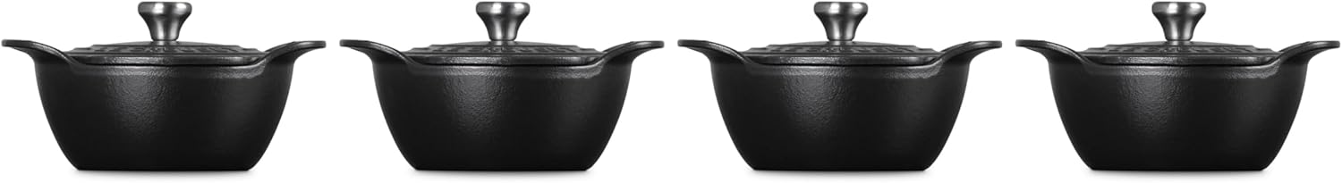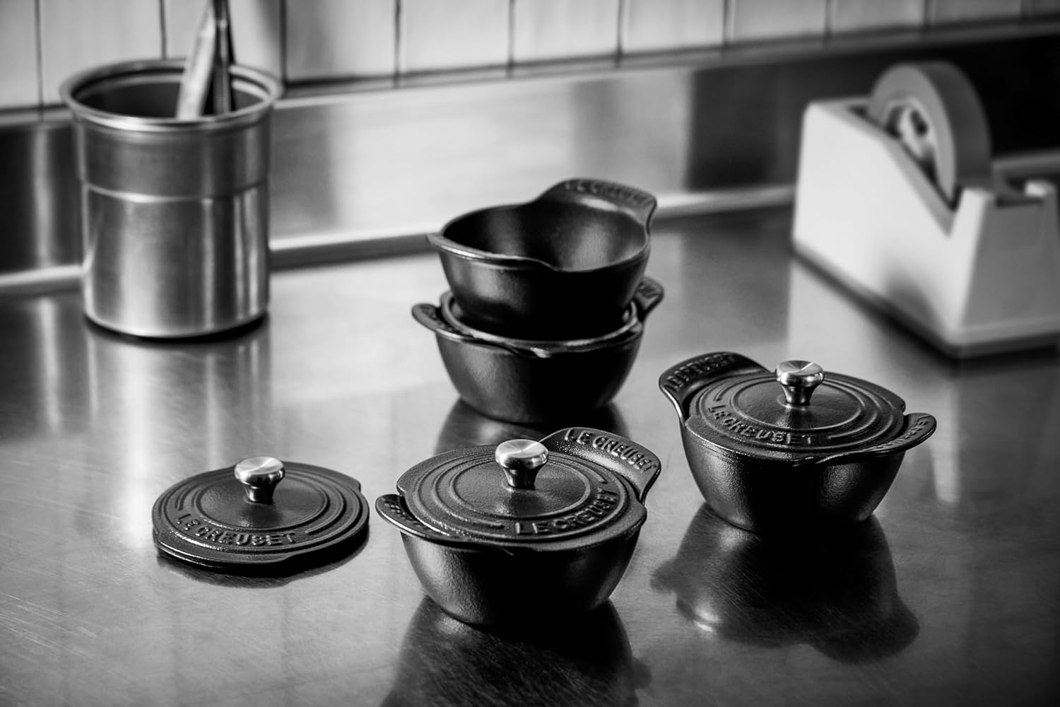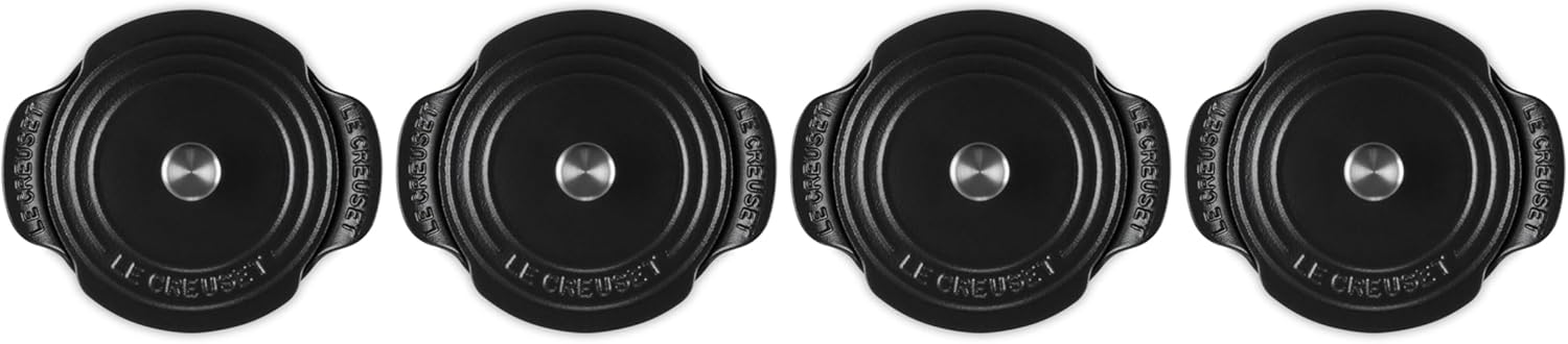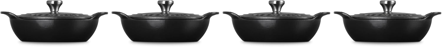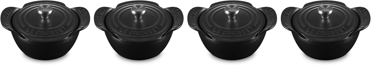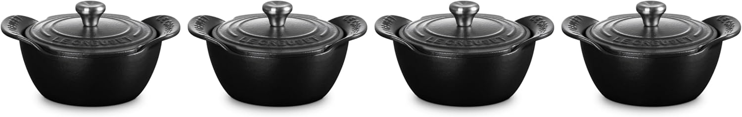 Le Creuset Enameled Cast Iron Gourmand Collection Set of 4 Mini Round Braiser, .3 qt., Matte Black w/Stainless Steel Knob