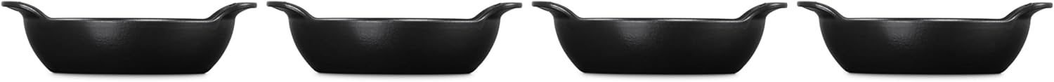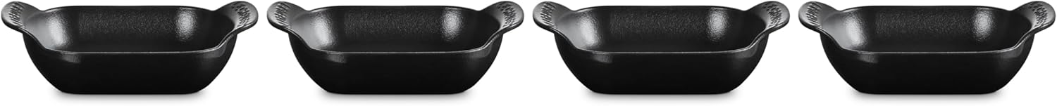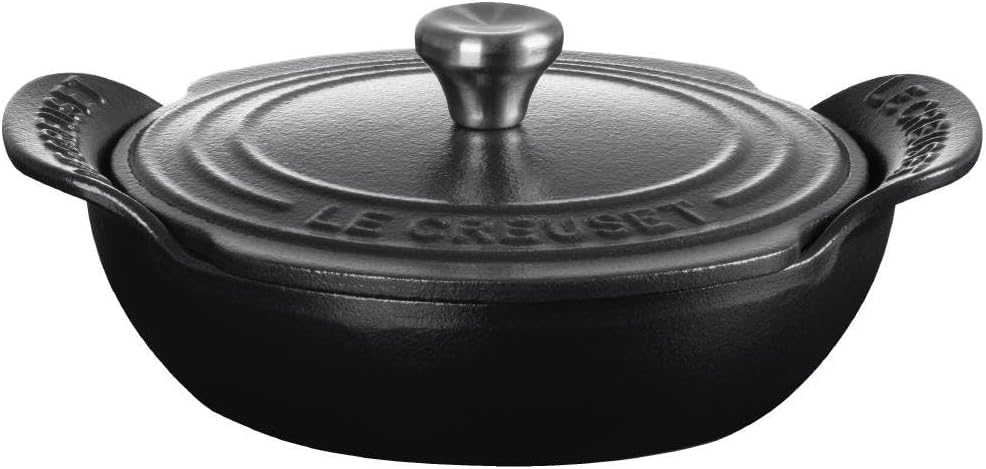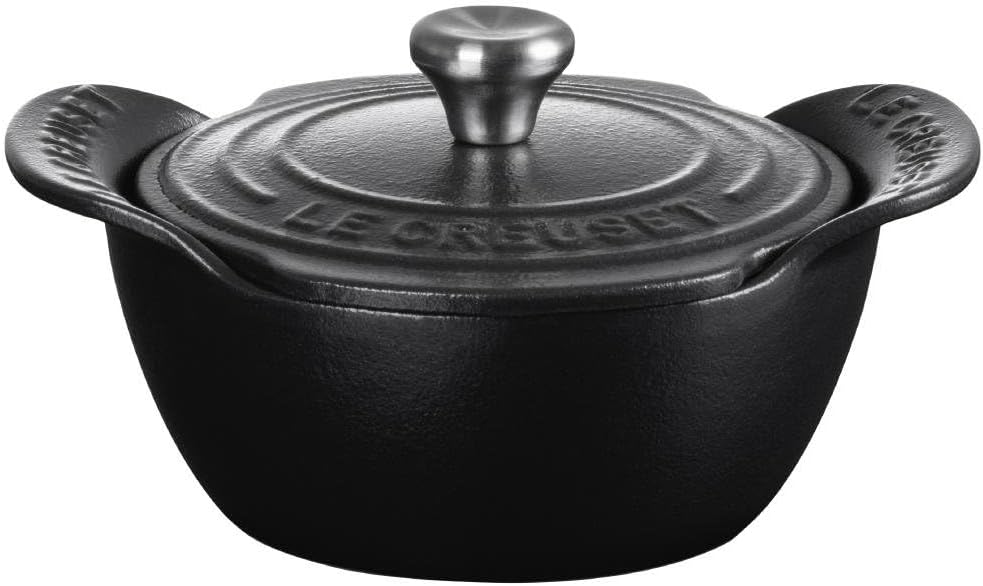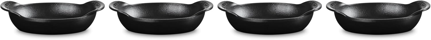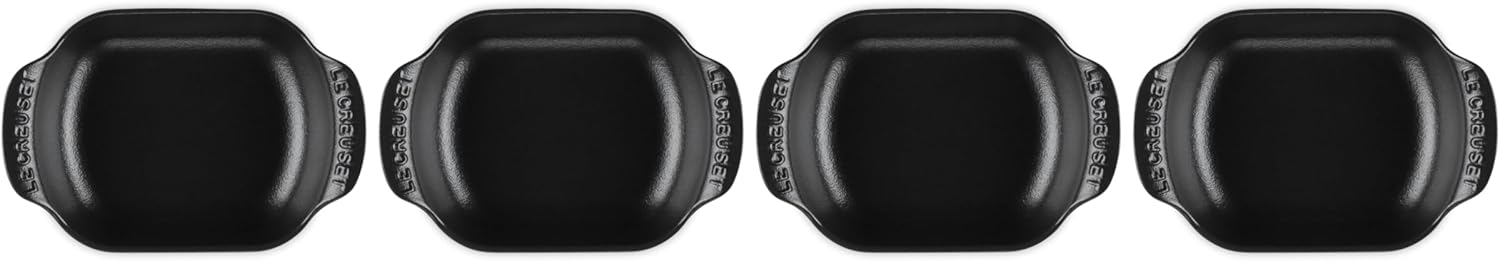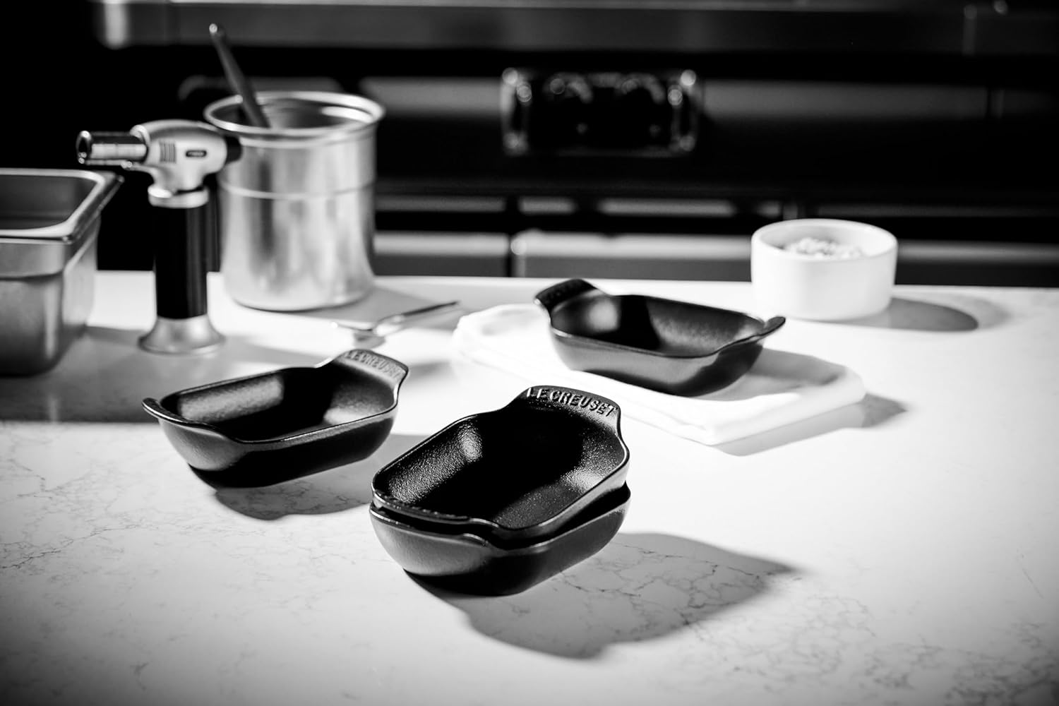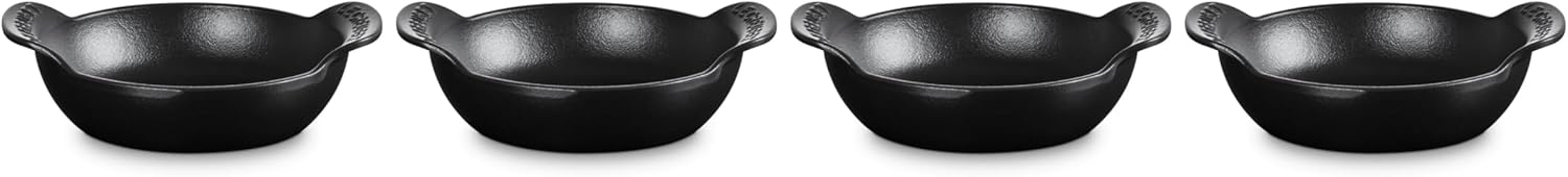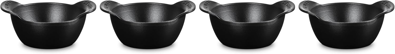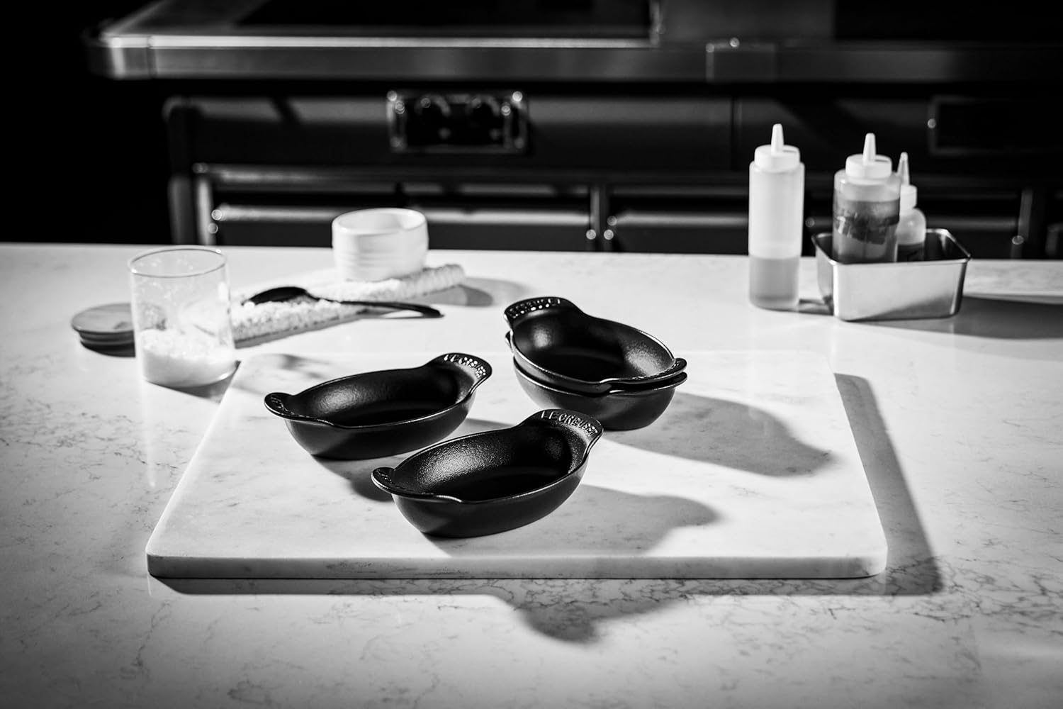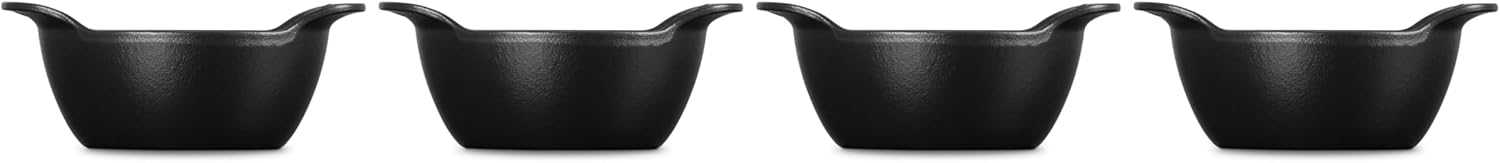 Le Creuset Enameled Cast Iron Gourmand Collection Set of 4 Mini Round Braiser, .3 qt., Matte Black w/Stainless Steel Knob
