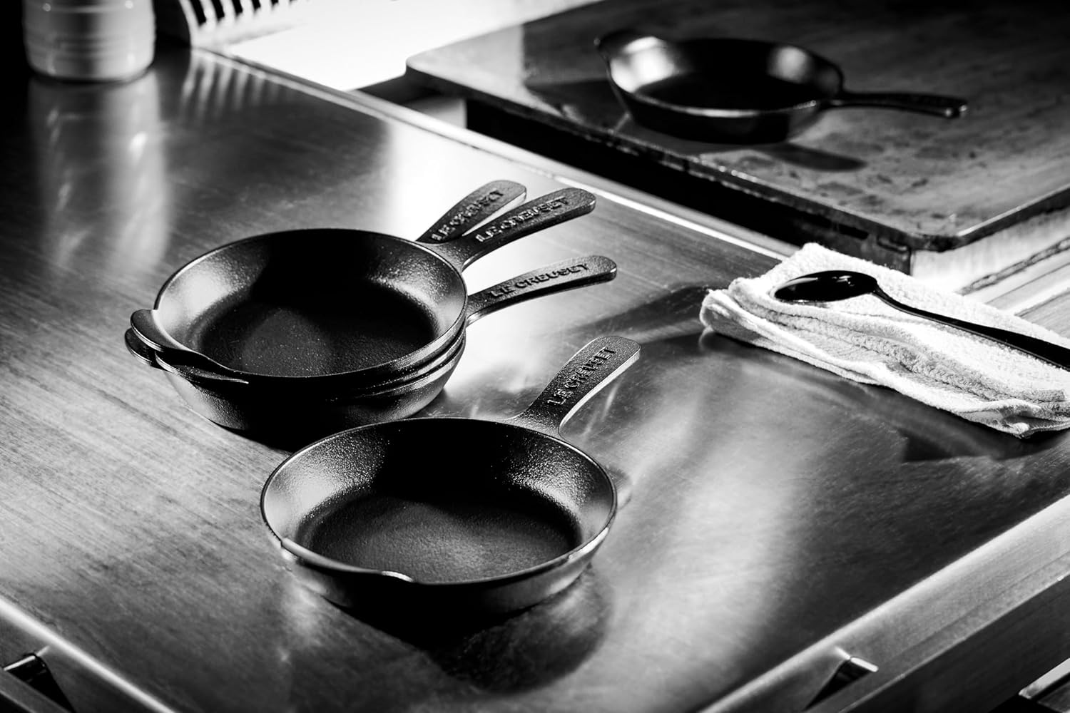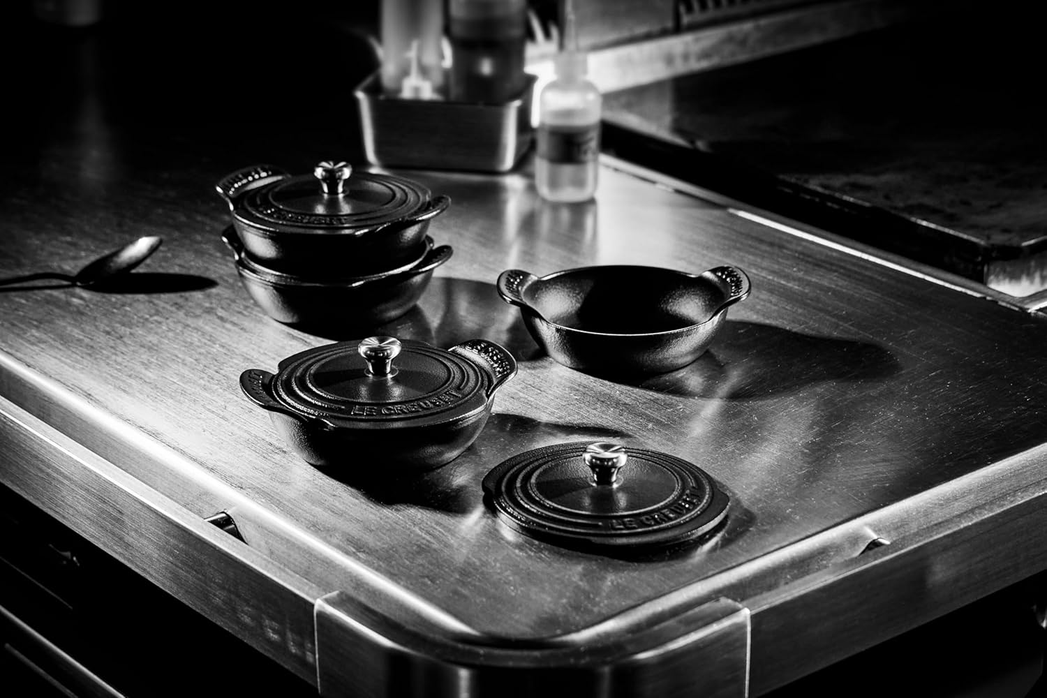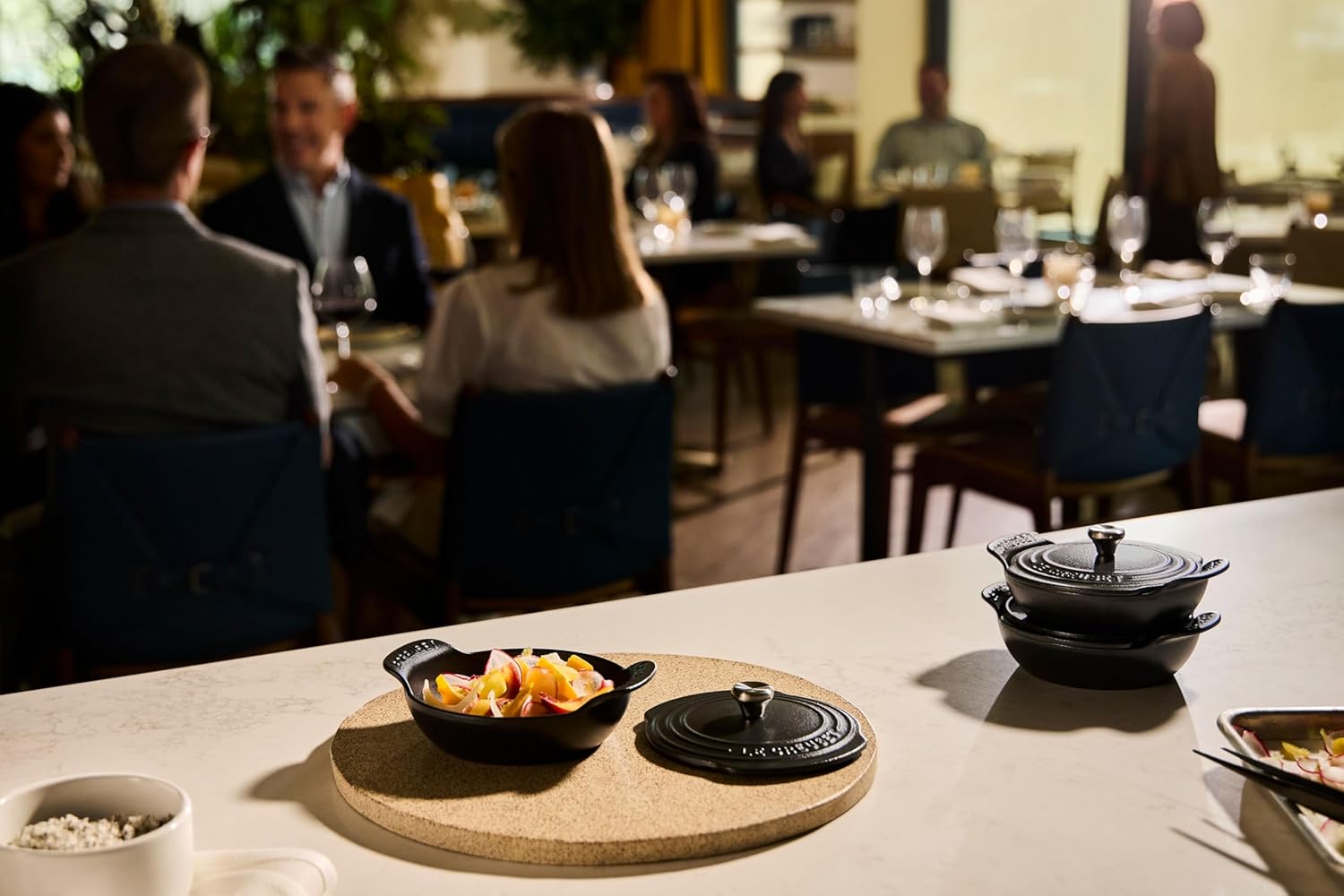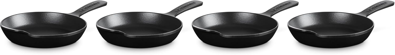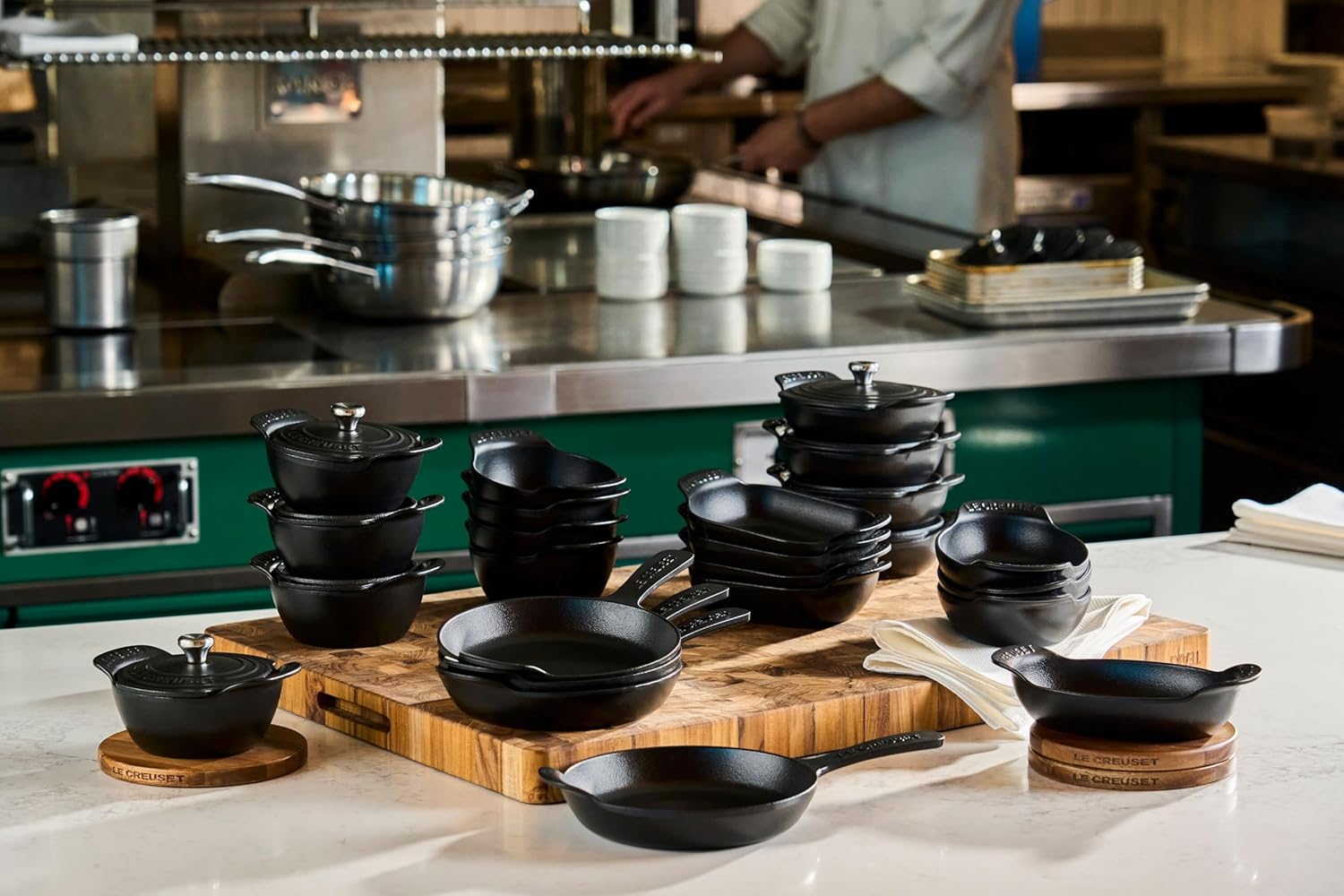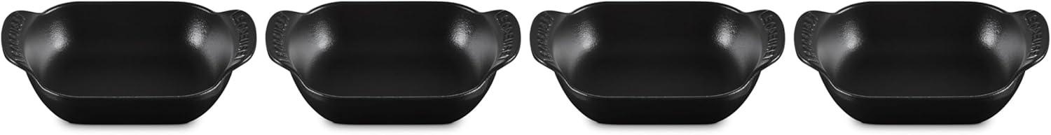 Le Creuset Enameled Cast Iron Gourmand Collection Set of 4 Mini Round Braiser, .3 qt., Matte Black w/Stainless Steel Knob